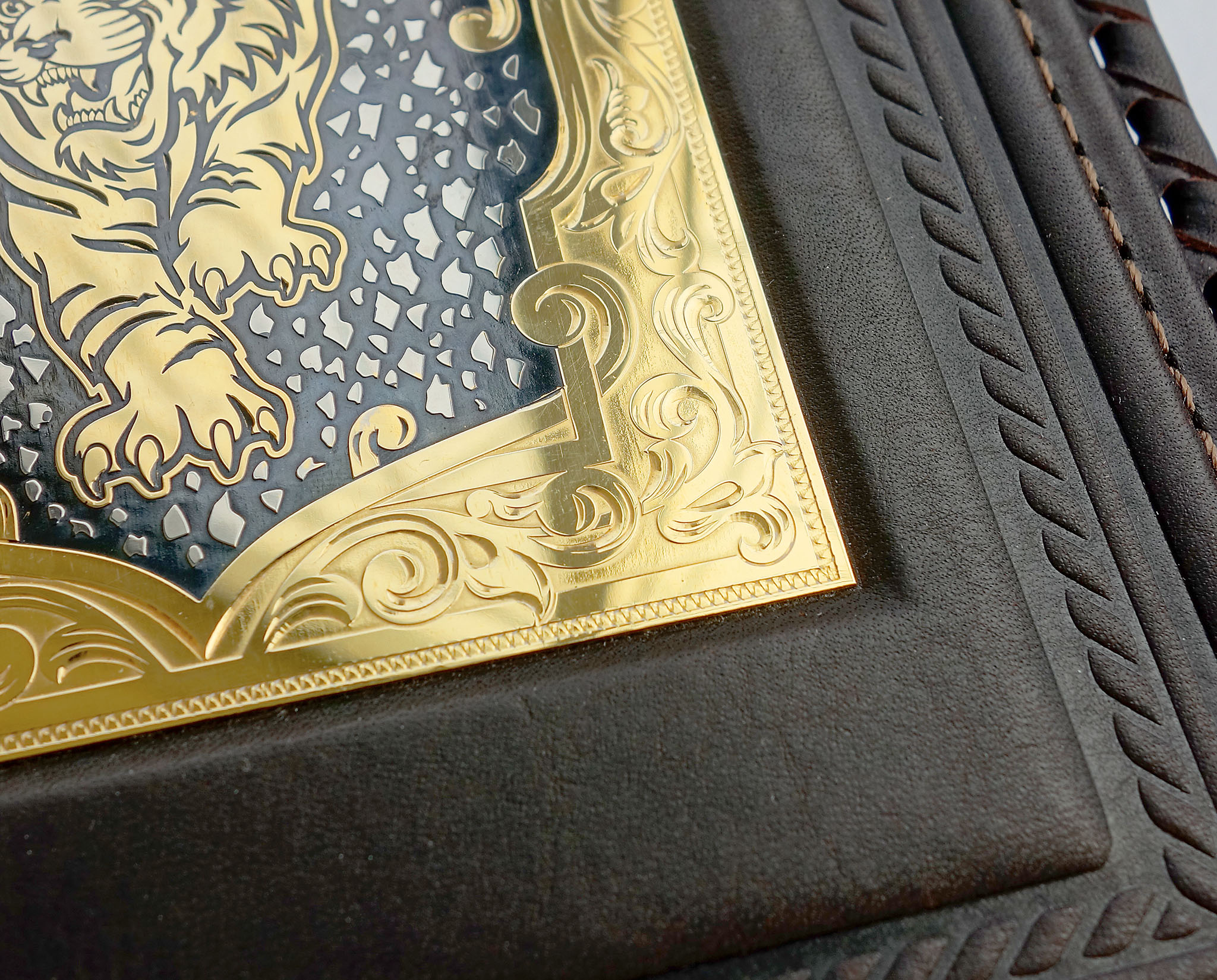 На обложке использована технология златоустовской гравюры с золочением, что делает дизайн ежедневника еще более выразительным и ярким. Главным украшением обложки является величественный тигр, выполненный методом гравировки. Не упустите возможность порадовать себя или своих близких таким прекрасным подарком! |