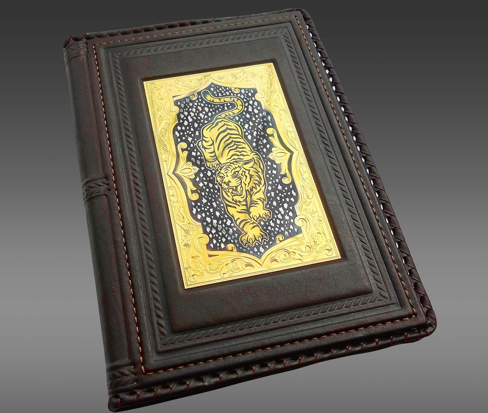 Подарила мужу на Новый год(год тигра) кожаный ежедневник с изображением тигра. Ему подарок очень понравился, чуть позже приобретем у вас сменный блок еще. |