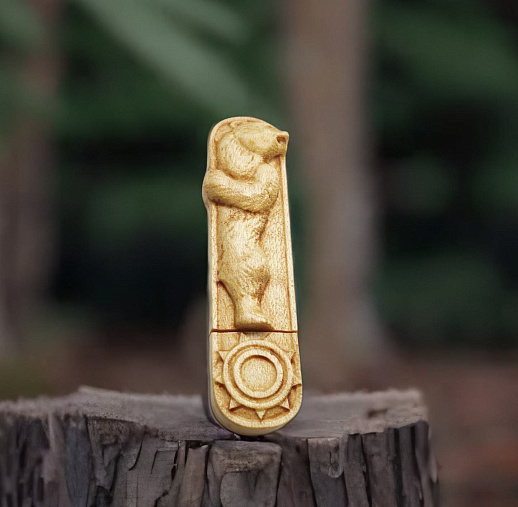 Сувенирная флешка из дерева "Медведь" № 2