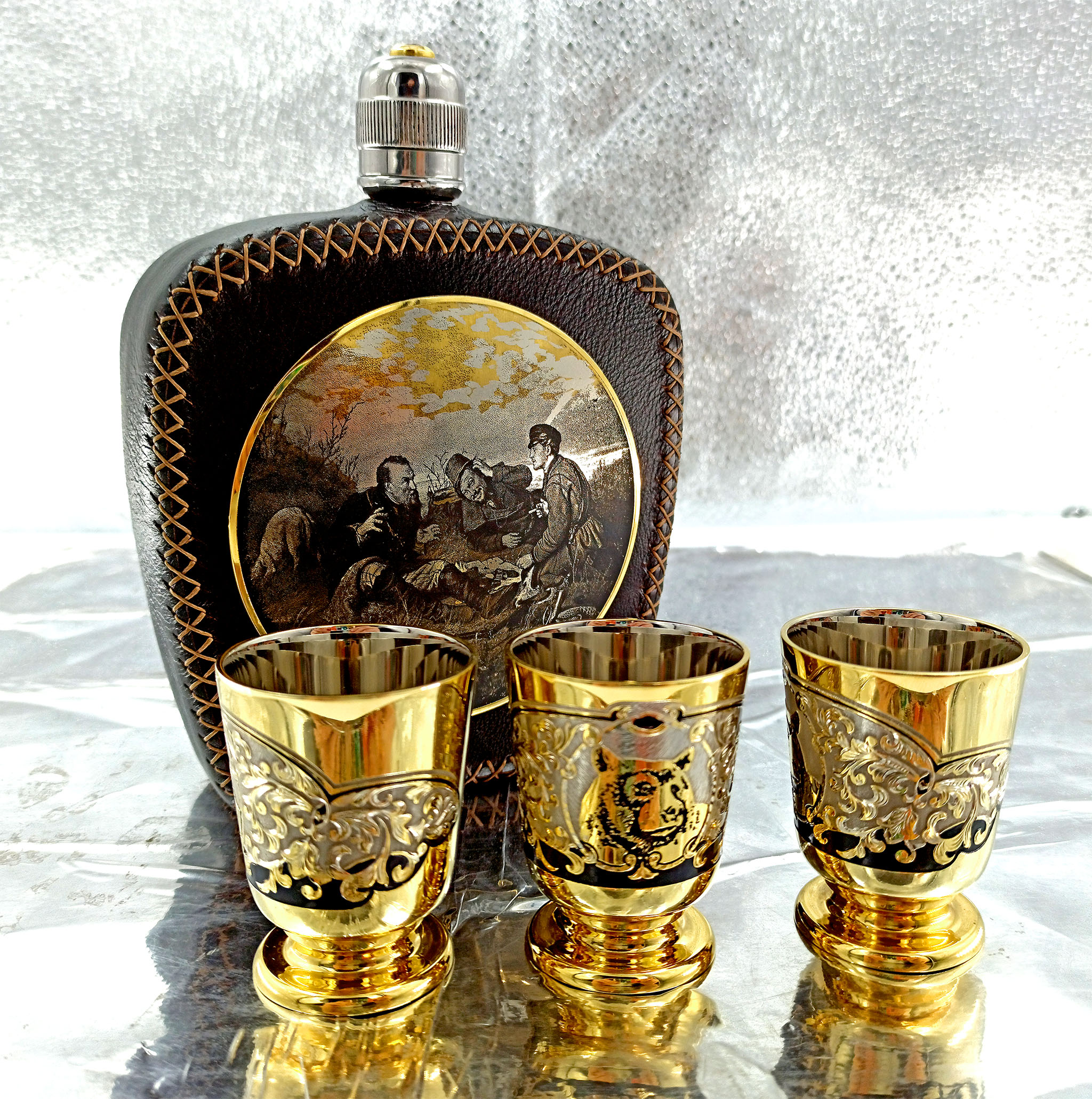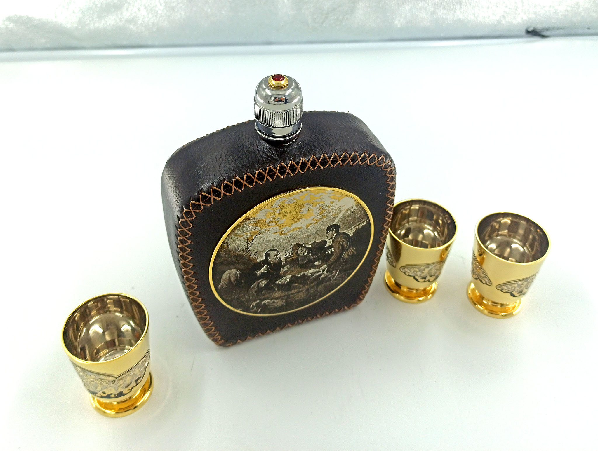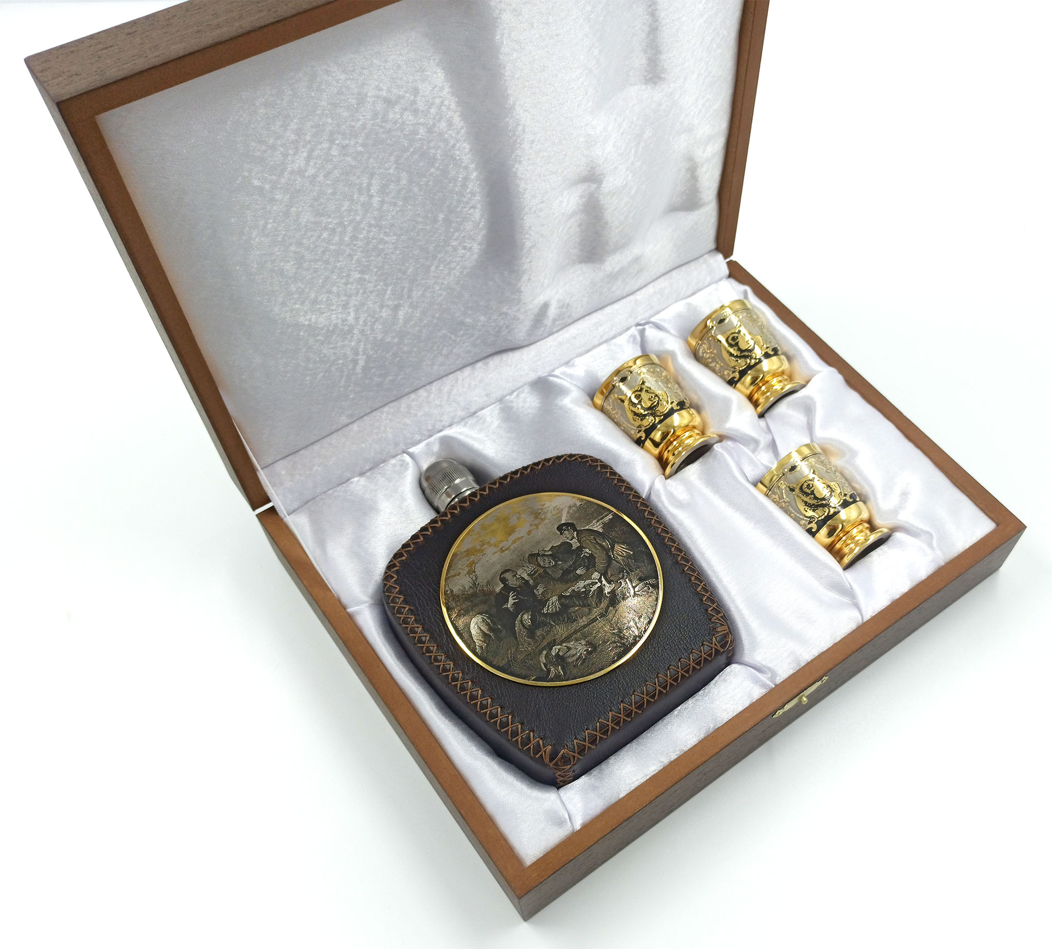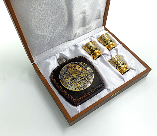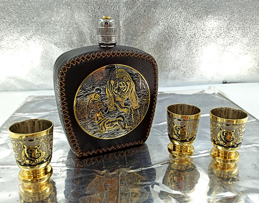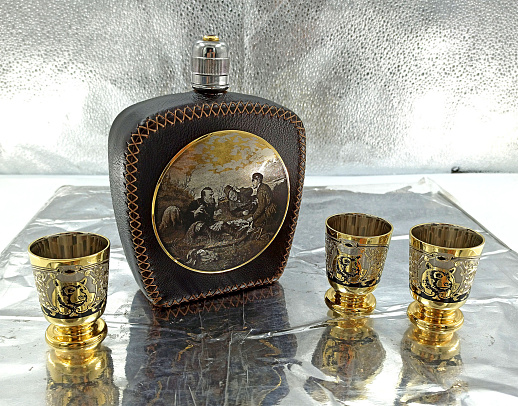 Набор фляжка кожа "На охоте". Златоуст