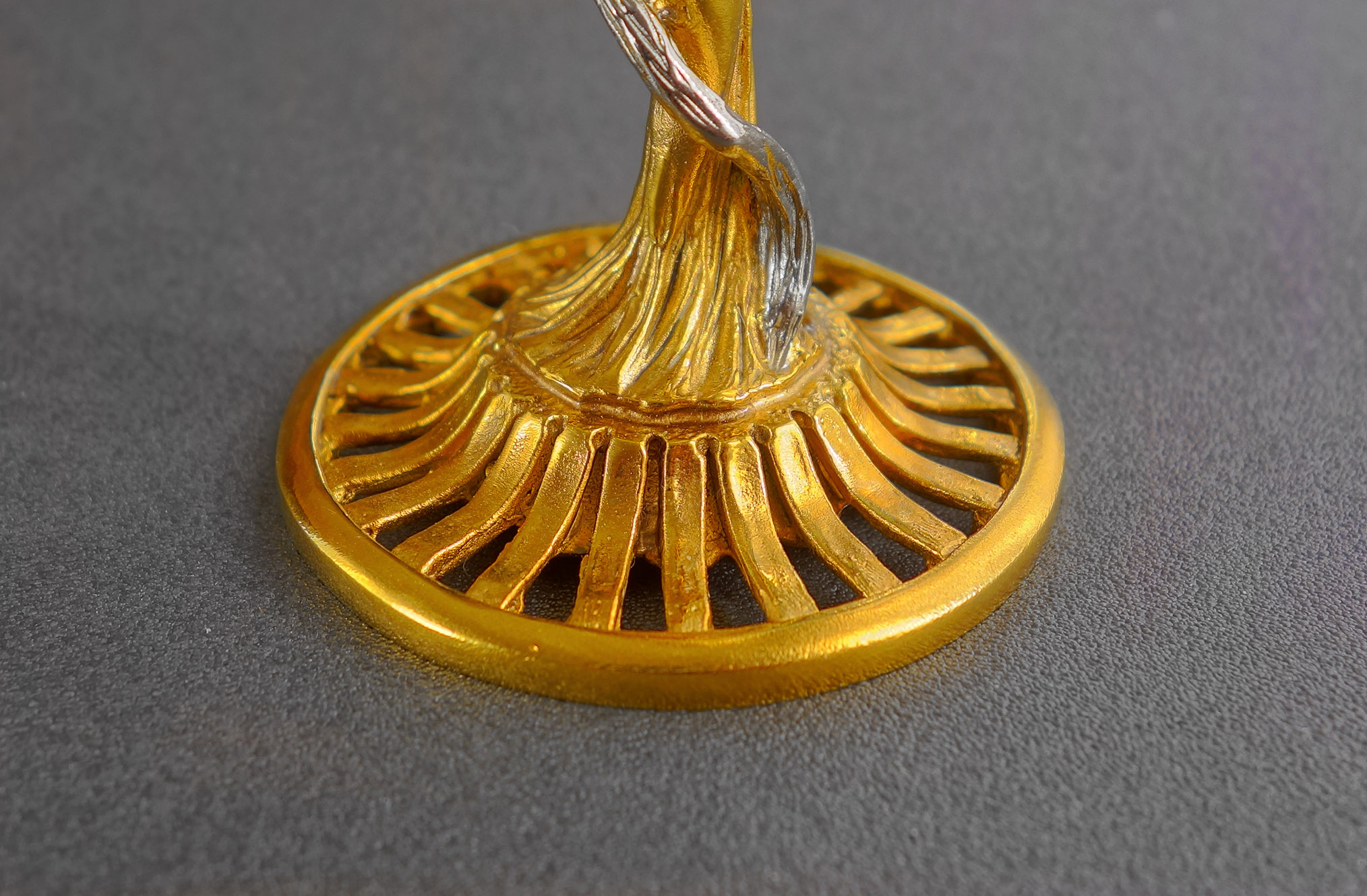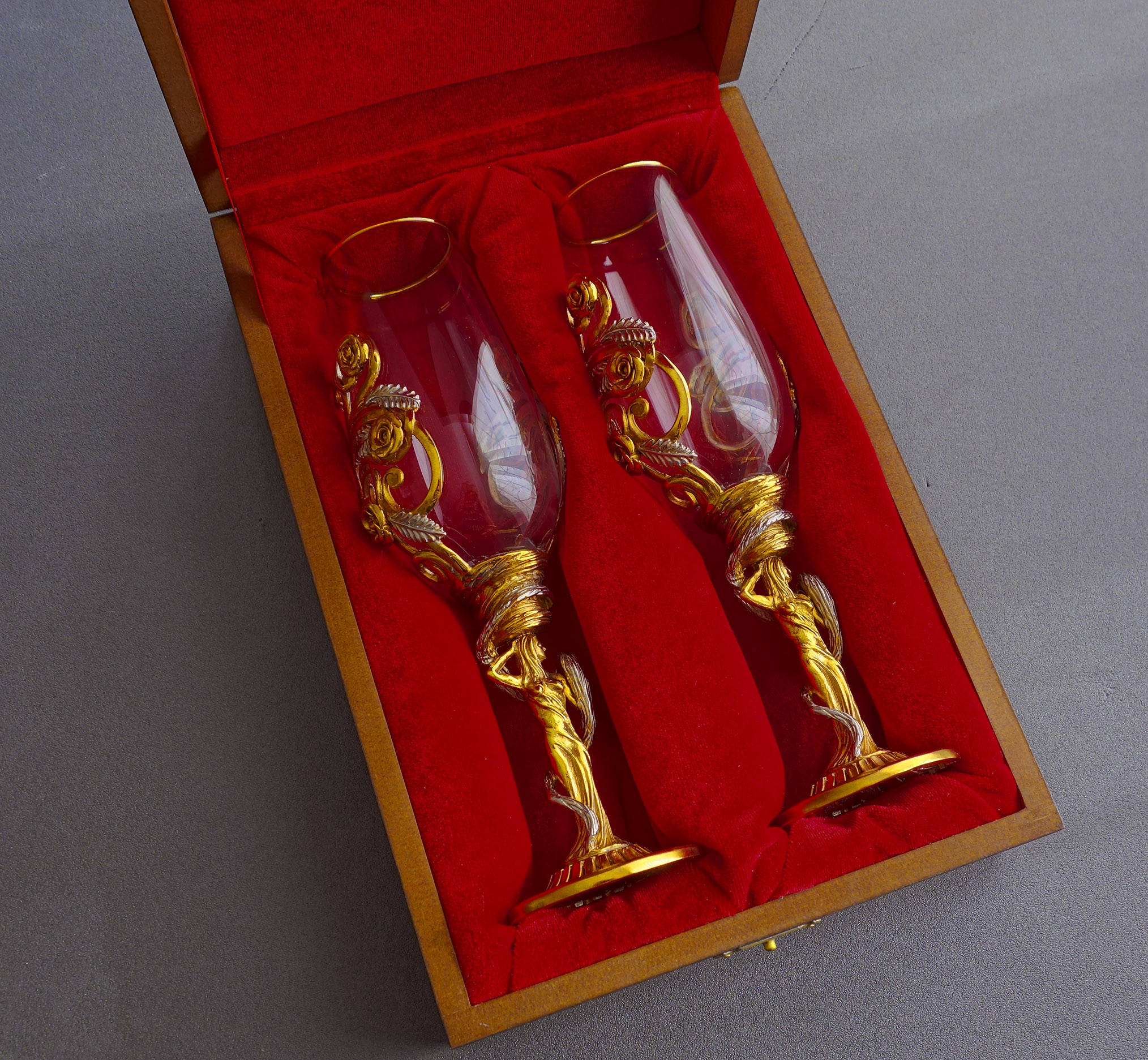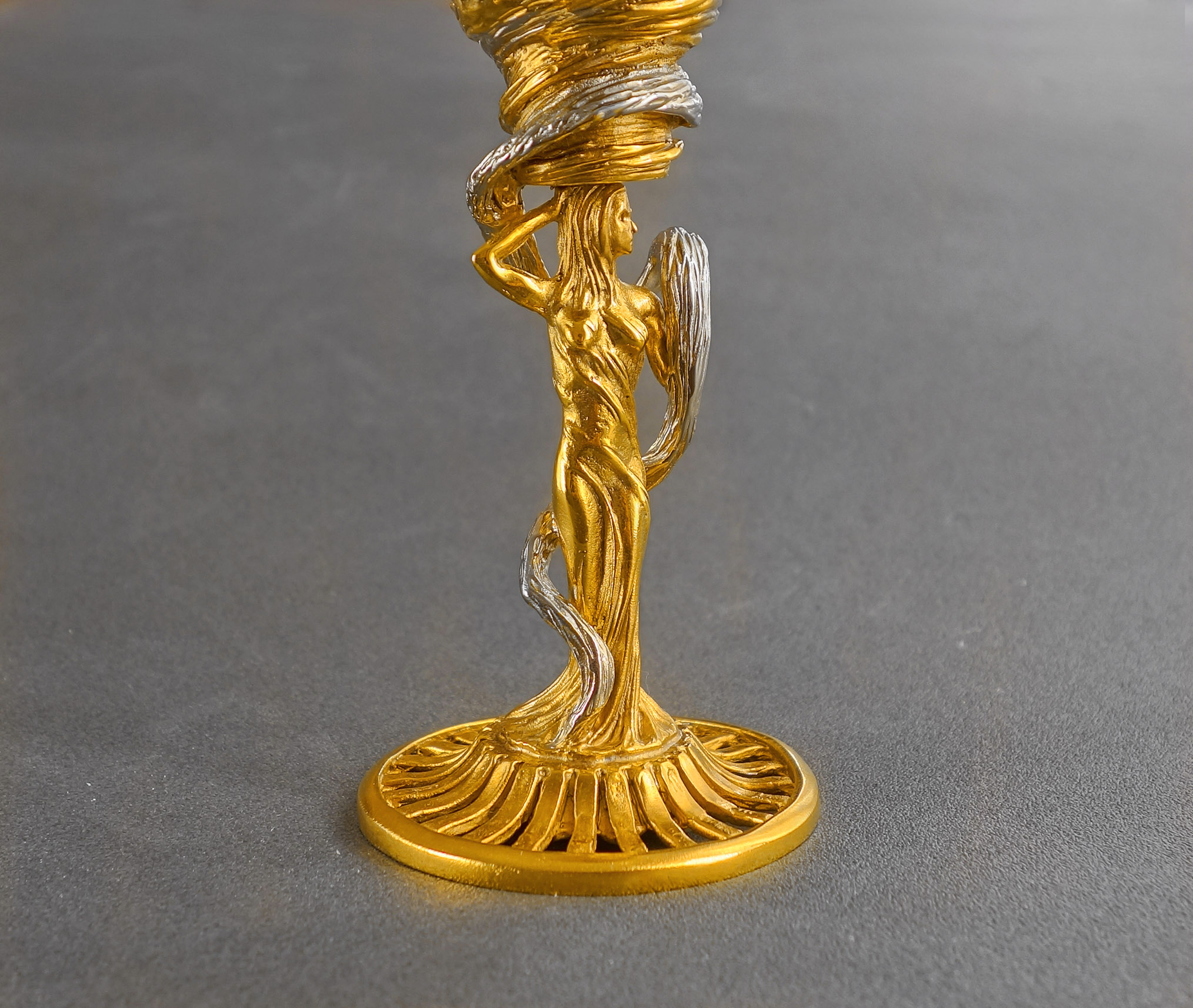 Украсьте торжественный момент приятным шампанским, но не просто из обычных бокалов. Представляем вашему вниманию фужеры для шампанского Изабелла, выполненные из бронзы и украшенные золотым покрытием. Их внешний вид не оставит равнодушным ни одного гостя. Особенностью наших фужеров является их ножка: она выполнена в виде изящной фигурки девушки. Такой оригинальный аксессуар будет кстати как на официальном приеме, так и на уютном семейном празднике. С Изабеллой любое торжество превратится в по-настоящему праздничное событие, добавив изысканности и шарма. Уверены, что эти фужеры станут незабываемым подарком для ваших близких или великолепным дополнением к вашему сервизу. Изабелла — это не просто фужеры, это произведение искусства, которое украсит любой стол. |