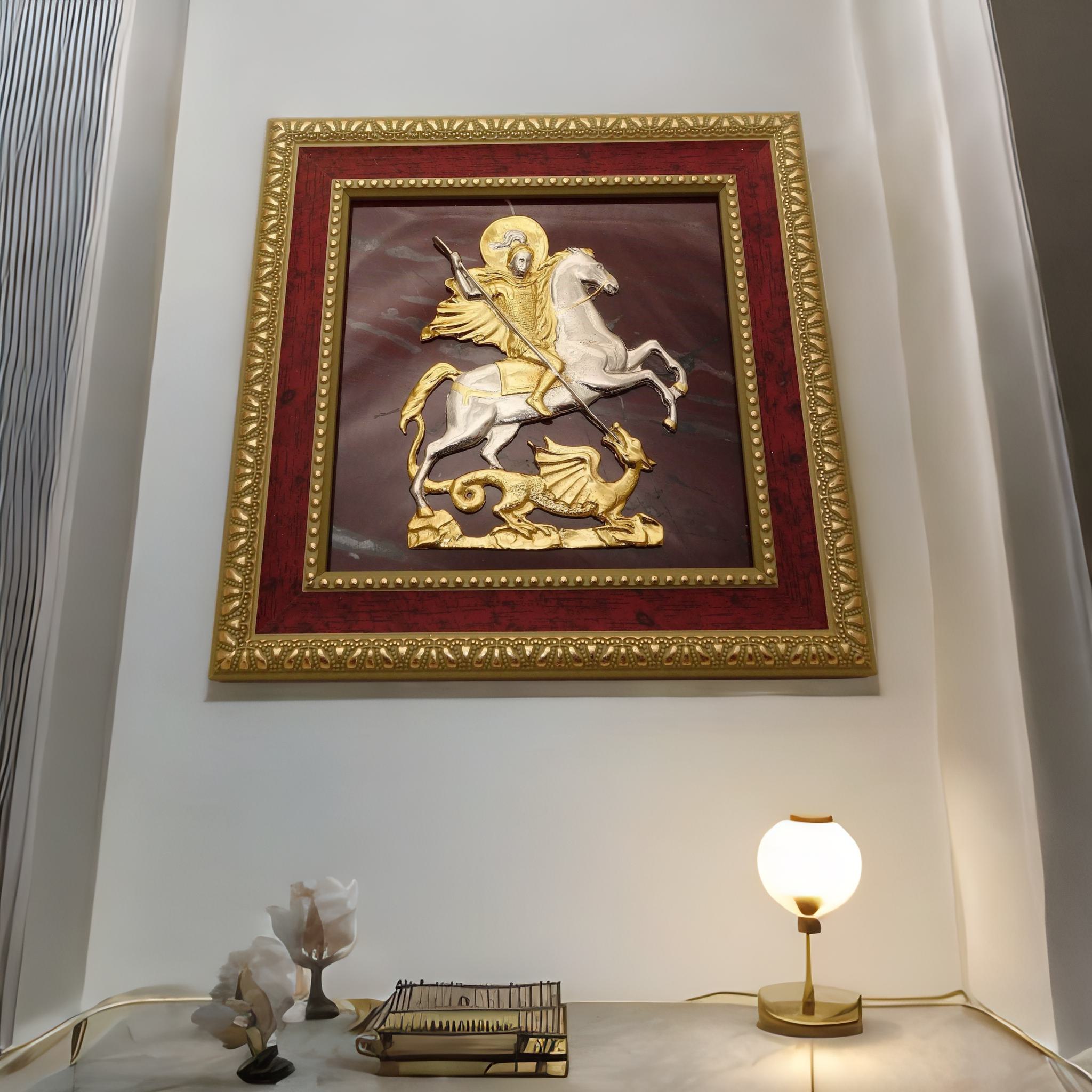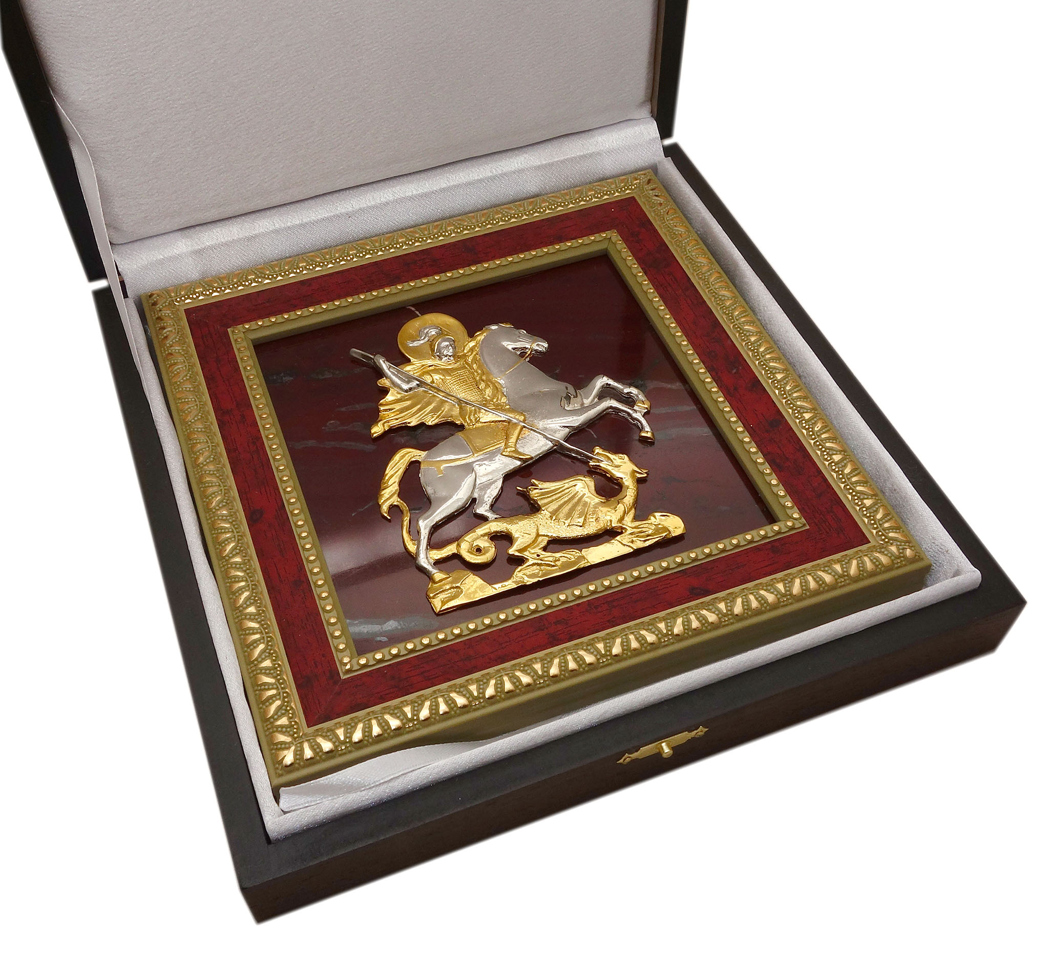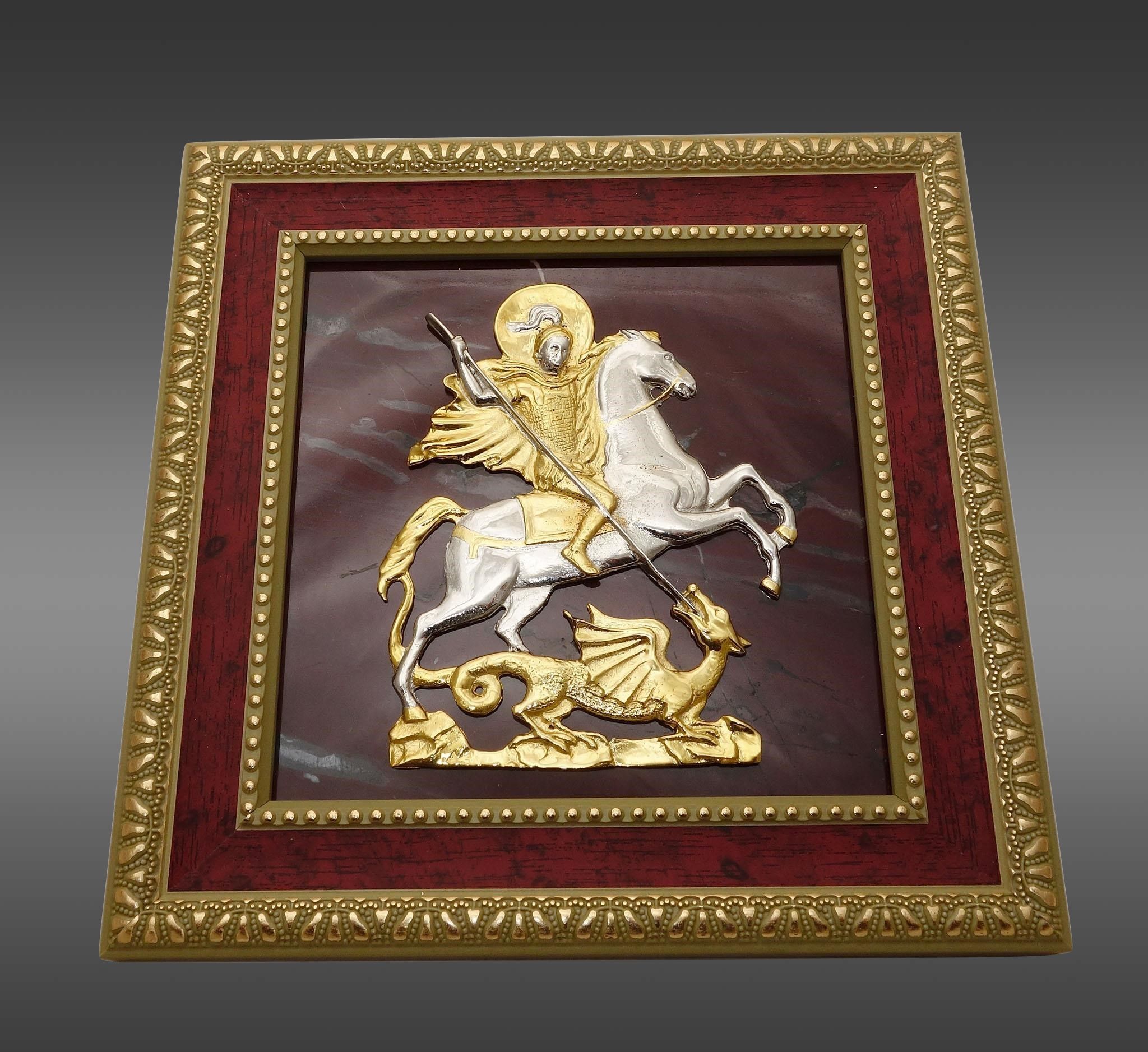 Обращаем ваше внимание на эксклюзивное предложение – бронзовое настенное панно Георгий Победоносец На яшме. Изделие выполнено из качественного материала - бронзы, а золочение подчеркнет статус и благородство искусства. Великий Георгий Победоносец, изображенный на панно, станет защитником вашего дома и символом мужества для его обитателей.