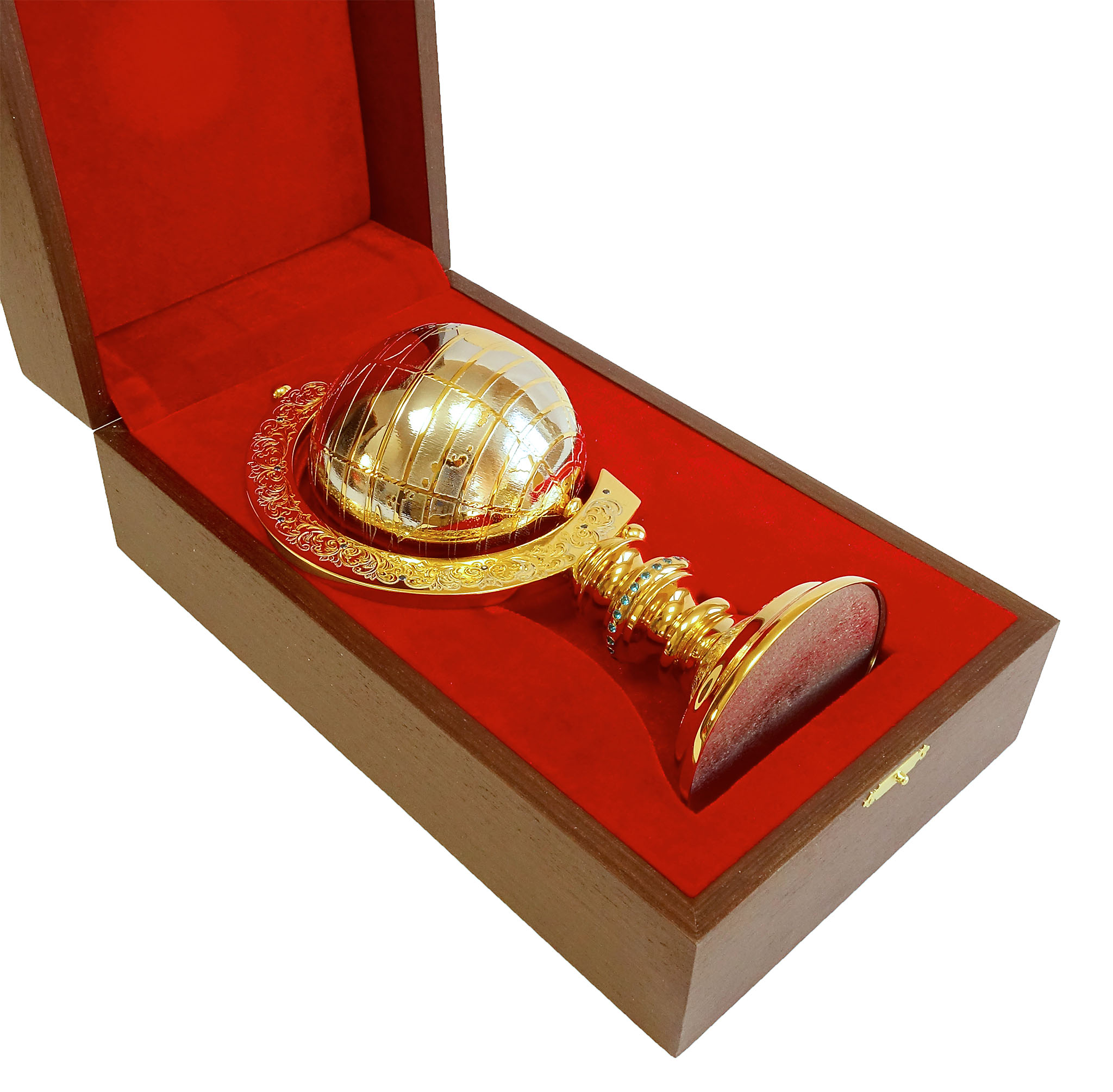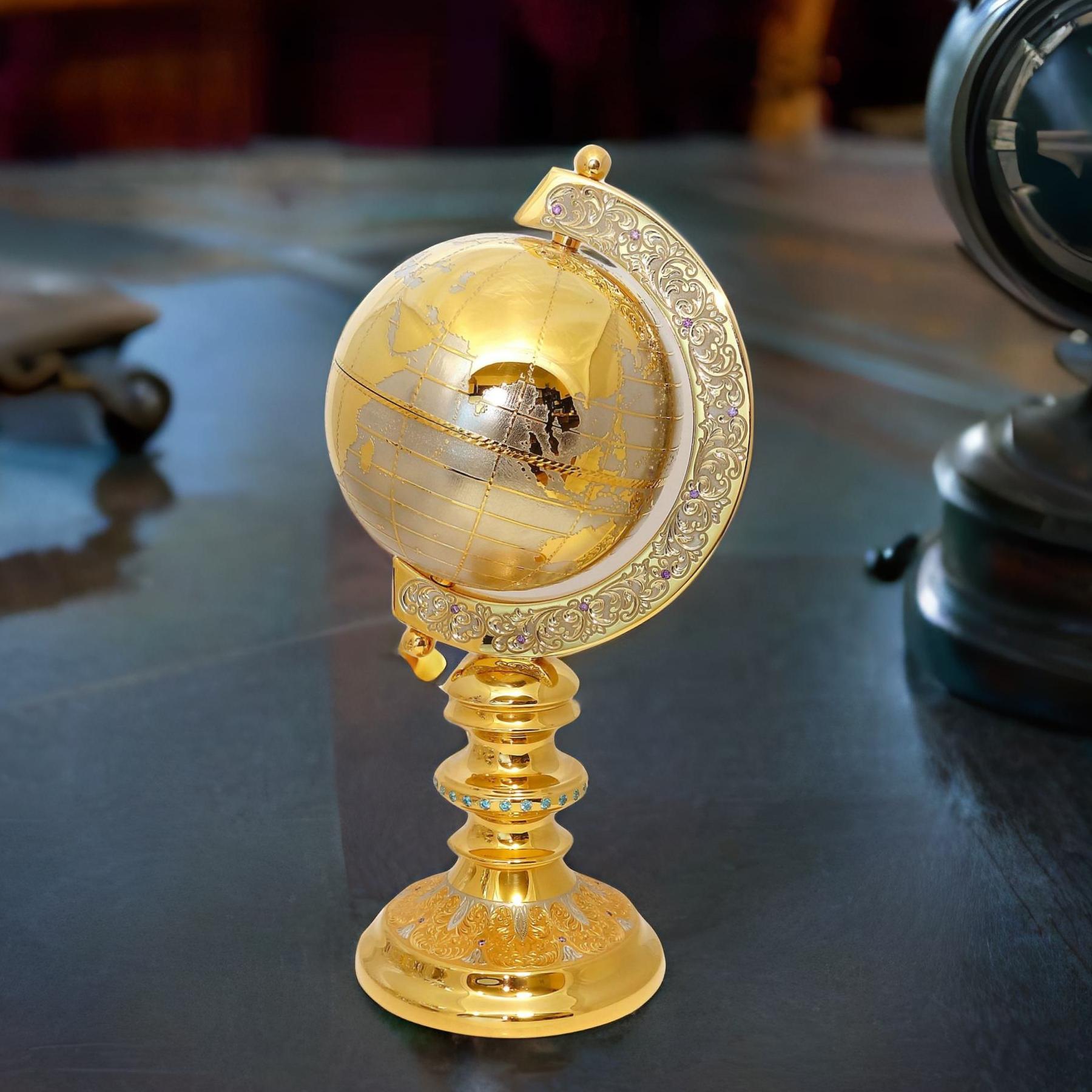 Откройте для себя мир изысканного искусства и качественной работы с глобусом "Золотой". Этот потрясающий аксессуар создан для тех, кто ценит роскошь и эстетическое удовольствие, и является настоящим произведением искусства. Глобус украшен ювелирными вставками из фианитов, которые искрятся и играют на свету, придавая ему неповторимое очарование. Золотое покрытие превращает этот глобус в действительно уникальный предмет, способный украсить любой интерьер и стать изумительным подарком для дорогих вам людей. Глобус "Золотой" – это не только эффектный элемент декора, но и символ любви к географии, искусству и роскоши. Он будет радовать глаз и вдохновлять на новые открытия, являясь прекрасным памятным подарком или стильным украшением для домашнего или рабочего пространства. |