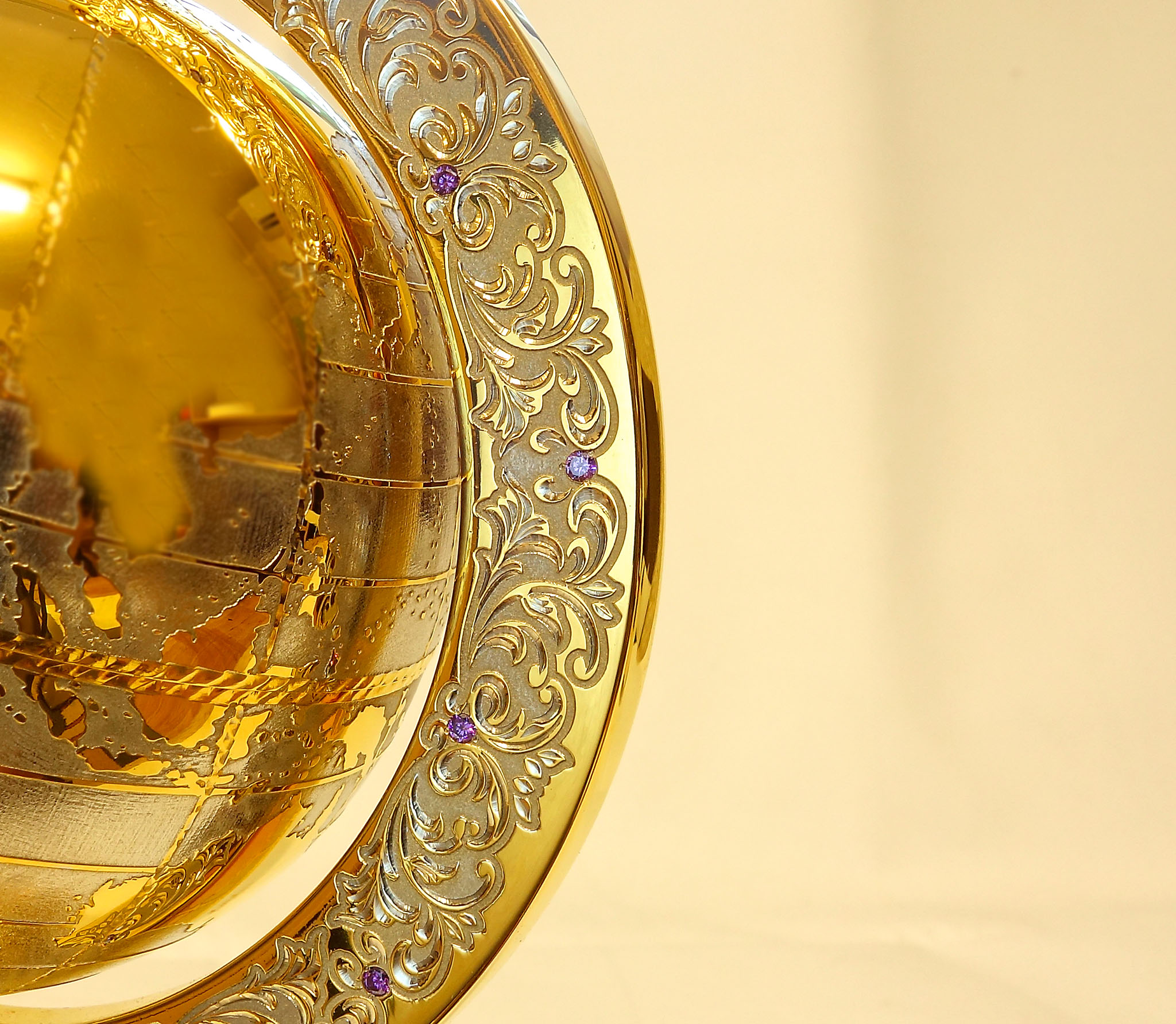 Искали подарок на юбилей главе крупного тур-агентства. Нашли золотой глобус и посчитали, что это будет самый актуальный и крутой подарок для него. Оказались правы, генеральному очень сильно понравился такой подарок. Гравюра смотрится превосходно. |