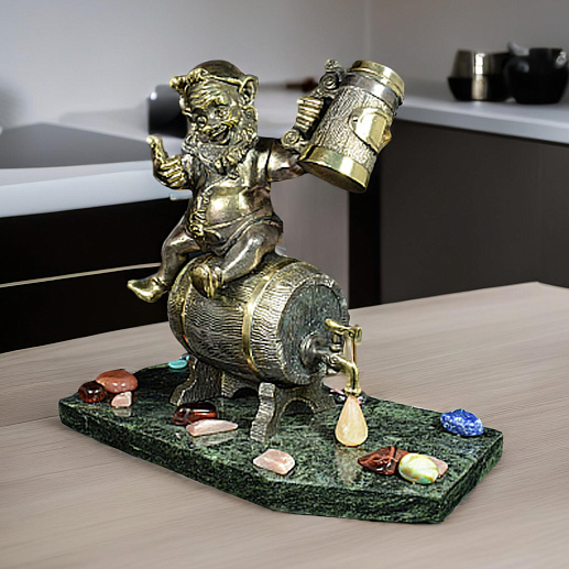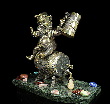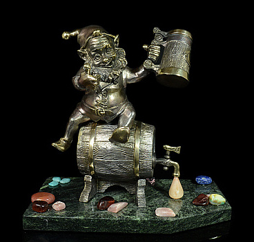 Бронзовый гном пивник на подставке из змеевика