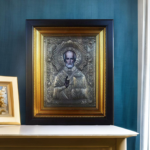 Рады представить Вам уникальный продукт — икону Николай Чудотворец, выполненную в технологии гальванопластики! Эта икона не просто украшение для вашего интерьера, это настоящий символ веры, оберег, который будет защищать вас и ваших близких, и при этом служить прекрасным дополнением к общему стилю комнаты.