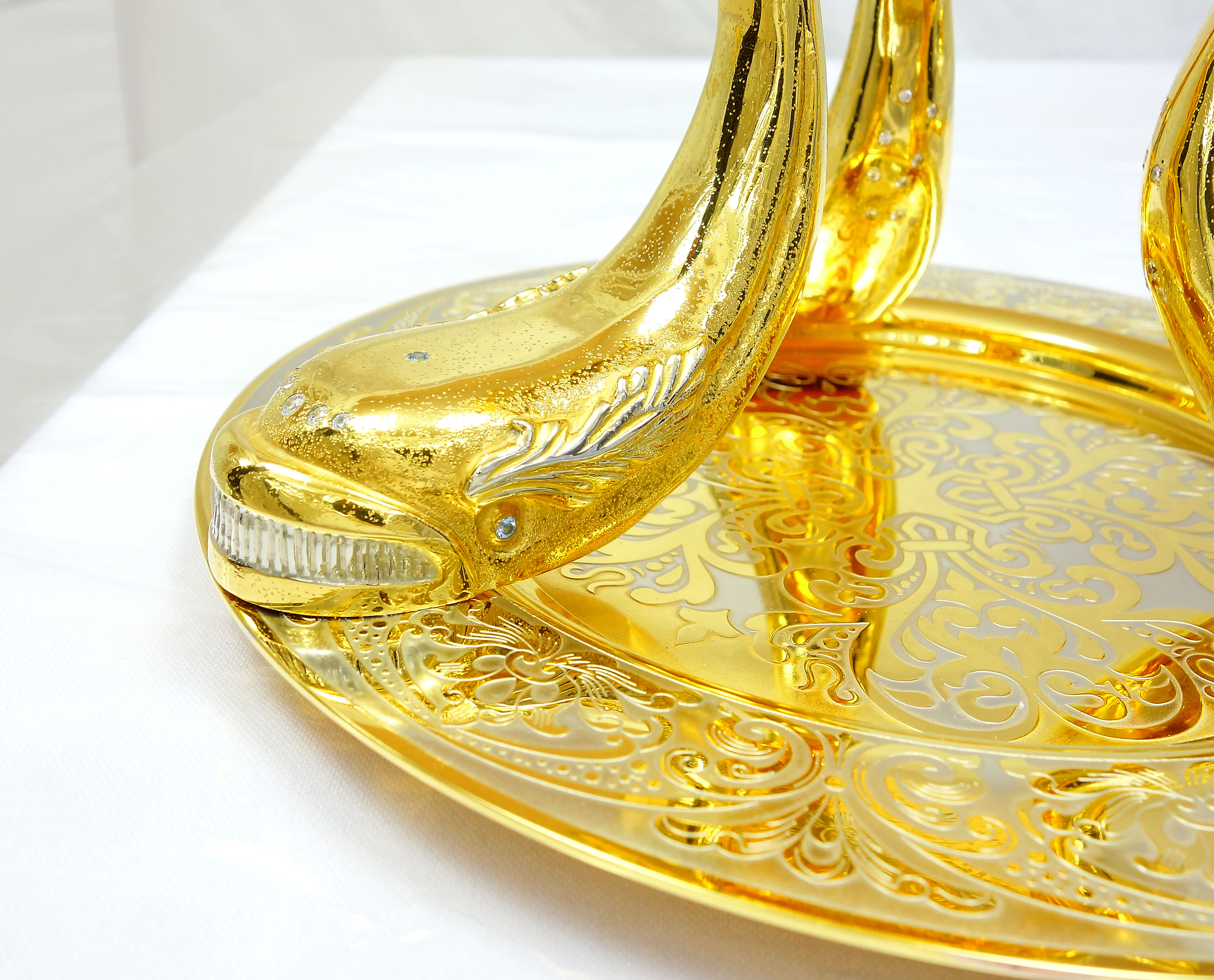 Икорница "Киты" – уникальный и изысканный элемент сервировки стола, который непременно привлечет внимание. Три статуэтки китов, выполненные в технике художественного литья, удерживают на своих хвостах чашу для икры. Эта икорница не только функциональна, но и великолепно украшена, станет прекрасным дополнением к вашему столу. Идеально подходит для торжественных событий и праздничных ужинов. Добавьте изюминку в ваш праздник с икорницей "Киты". |