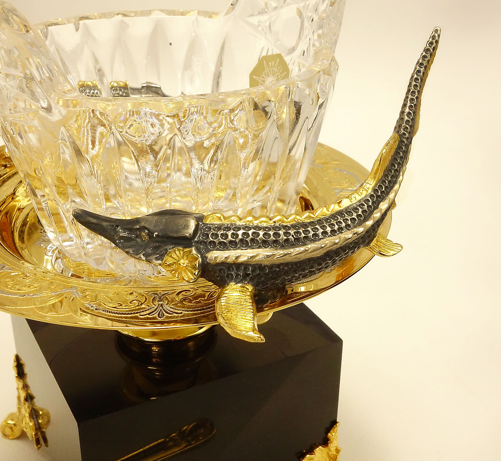 Представляем Вашему вниманию эксклюзивную икорницу на долерите "Царское угощение". Изящная хрустальная чаша, элегантно украшенная художественным литьем осетров, создает истинно роскошную атмосферу. Этот изысканный предмет декора прекрасно дополнит интерьер вашего дома или станет значимым подарком для важного человека. Оцените уникальность и мастерство исполнения этого произведения искусства, выполненного с любовью и заботой о каждой детали. Сделайте заказ и превратите обычный момент в особенный с этой драгоценной икорницей. |