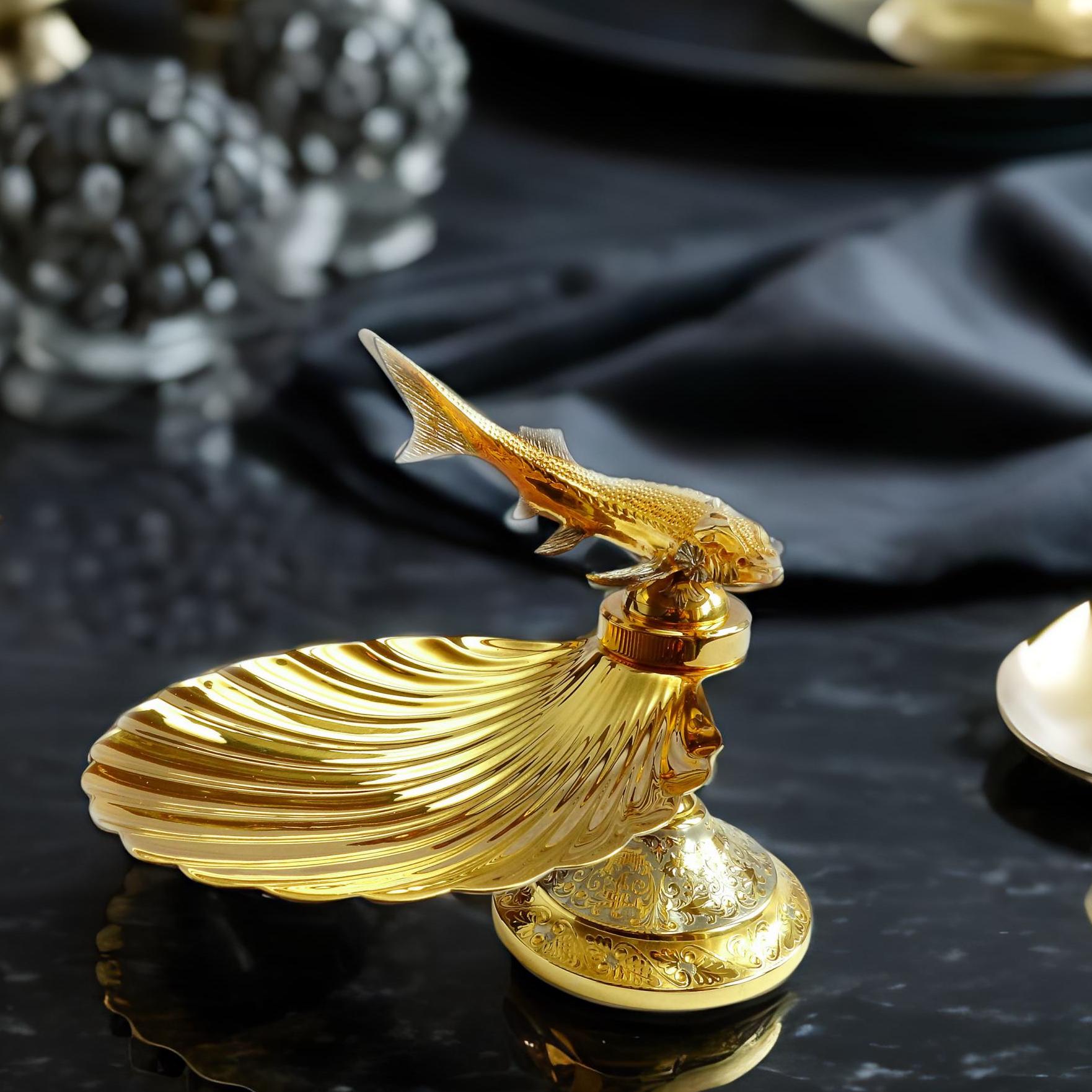 Утонченная и изящная икорница "Ракушка" из Златоуста поражает своей красотой и оригинальностью. Данная модель выполнена в форме привлекательной морской ракушки с элементами литья осетра, что придает ей неповторимый и уникальный вид. Это не просто емкость для икры, это настоящее произведение искусства, которое украсит любой стол. Она станет идеальным подарком для гурманов и любителей уникальных предметов интерьера. |