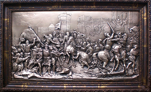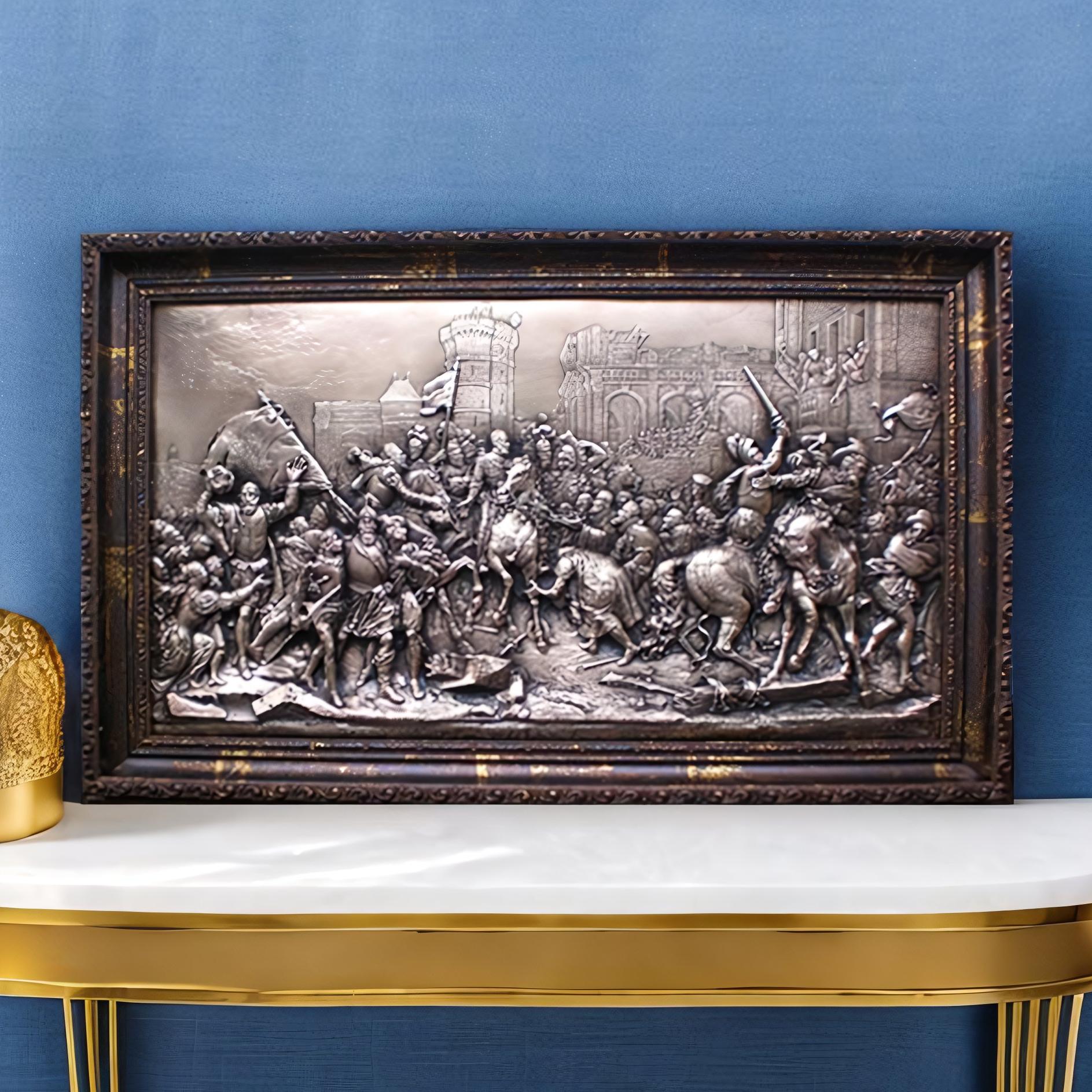 Уникальная картина Битва в Париже, выполненная с использованием великолепной техники гальванопластики, теперь доступна для приобретения! Это отличный выбор для ценителей изящного искусства, а также для тех, кто ценит уникальные и культурные товары. Гальванопластика — это техника, которая позволяет передавать наиболее тонкие детали изображения, придавая работе неповторимый шарм.