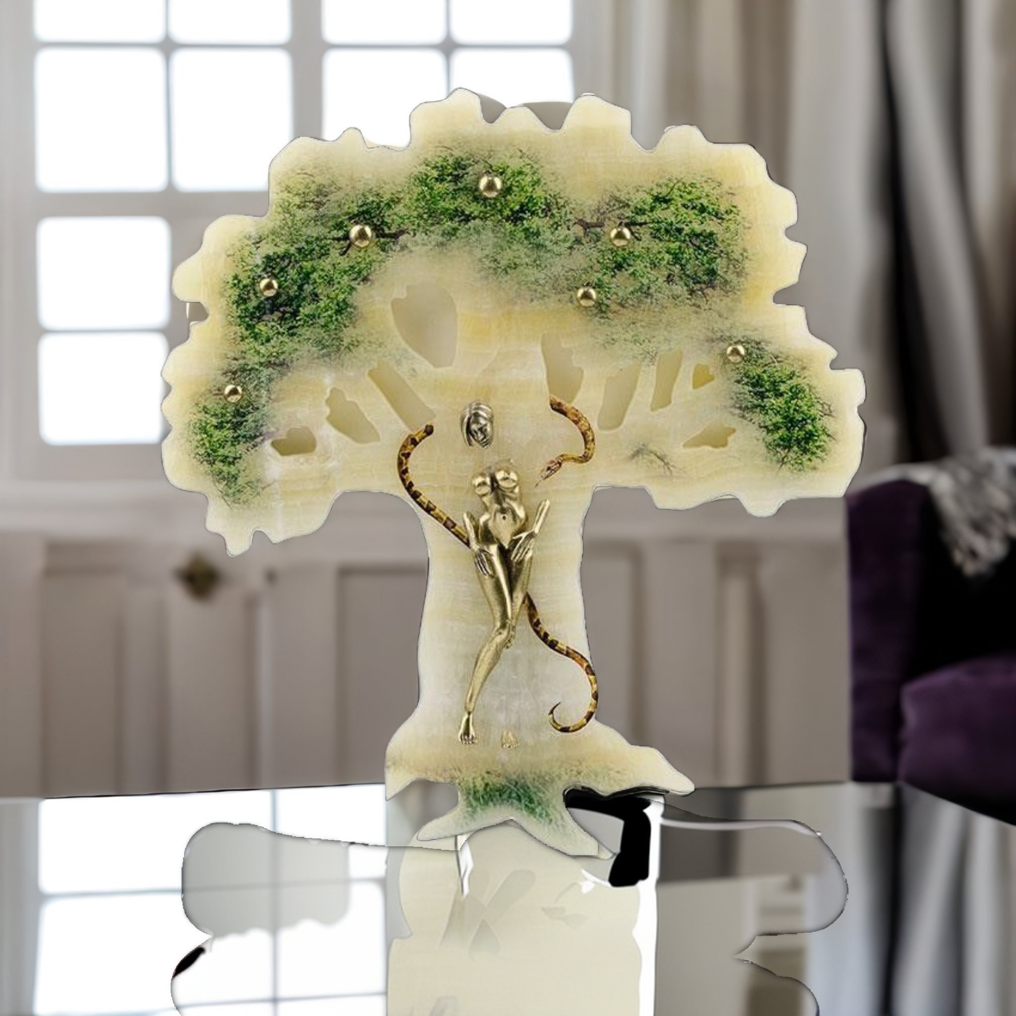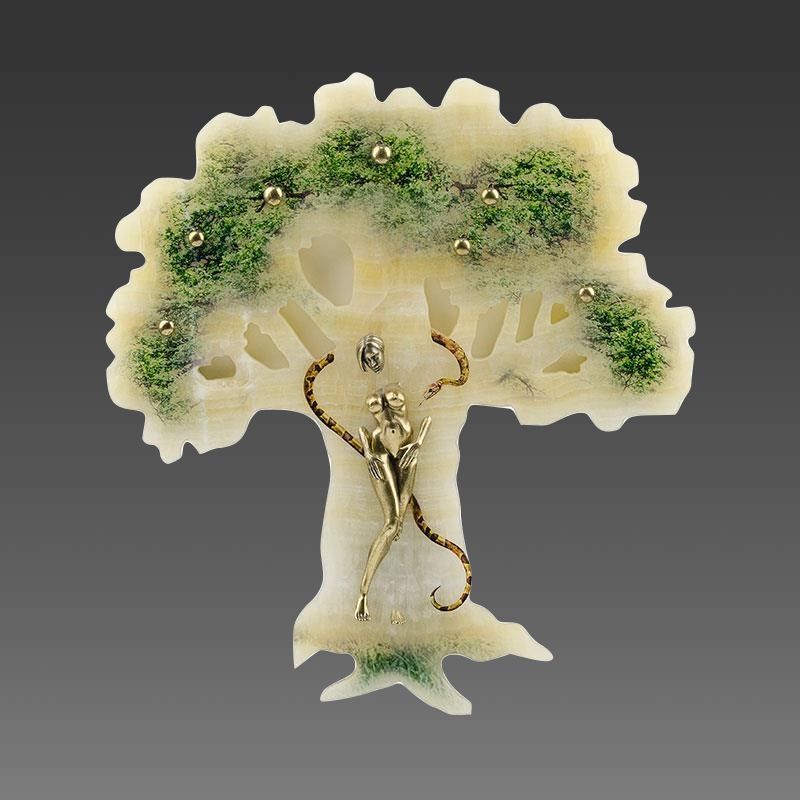 Окунитесь в фантастический мир искусства с нашей эксклюзивной бронзовой картиной Ева. Используя качественные материалы и уникальные техники изготовления, мы создали произведение, которое поднимет уровень эстетики вашего жилища на новую высоту. Дерево, нарисованное на великолепном ониксе, в сочетании с бронзовыми изображениями Евы и искусительного змея, создаёт поистине атмосферу библейской истории. Картина выглядит как изящное произведение искусства, которое отделано просто до совершенства.