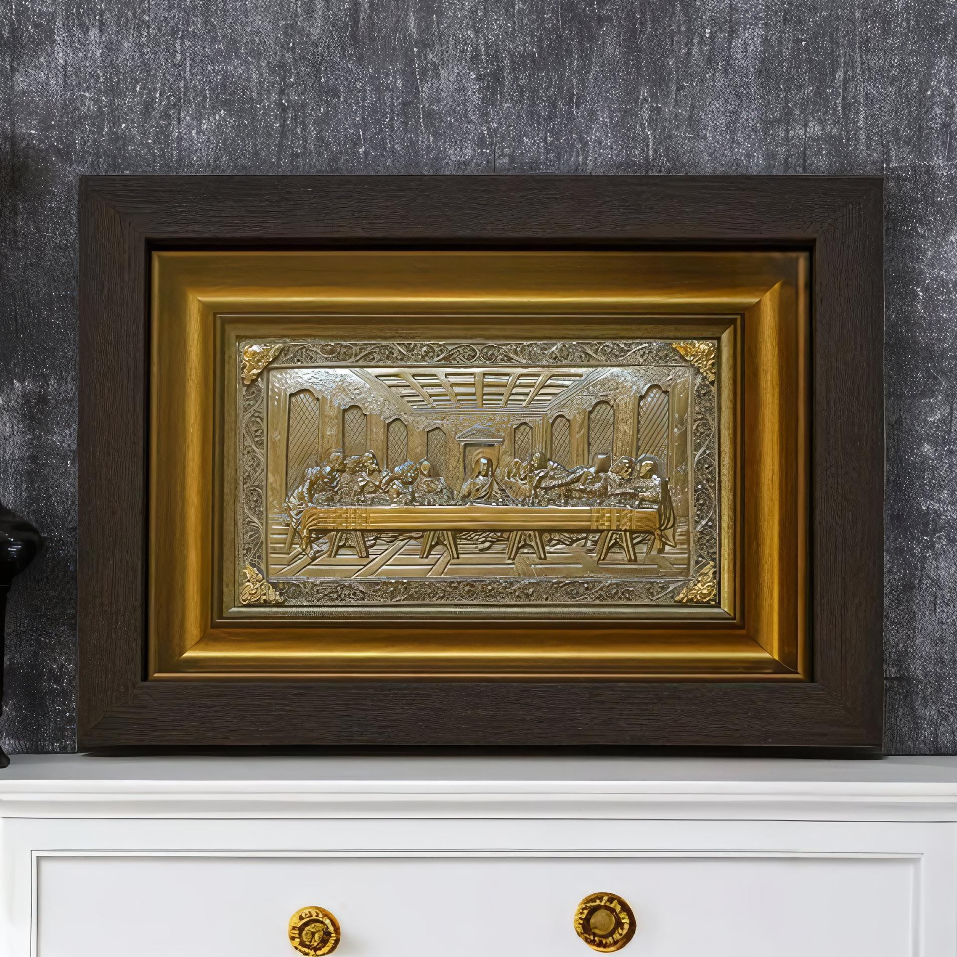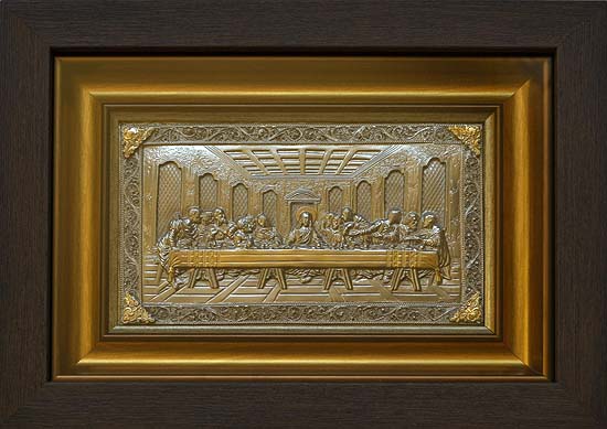 Картина из металла "Тайная вечеря" с золочением представляет собой уменьшенную версию одного из самых знаменитых христианских изображений. Эта работа может стать уникальным подарком для любителей искусства и верующих. Размещение этой картины в доме или офисе придаст помещению уникальный и таинственный характер, подчеркивая индивидуальность и глубокие духовные ценности хозяина. |