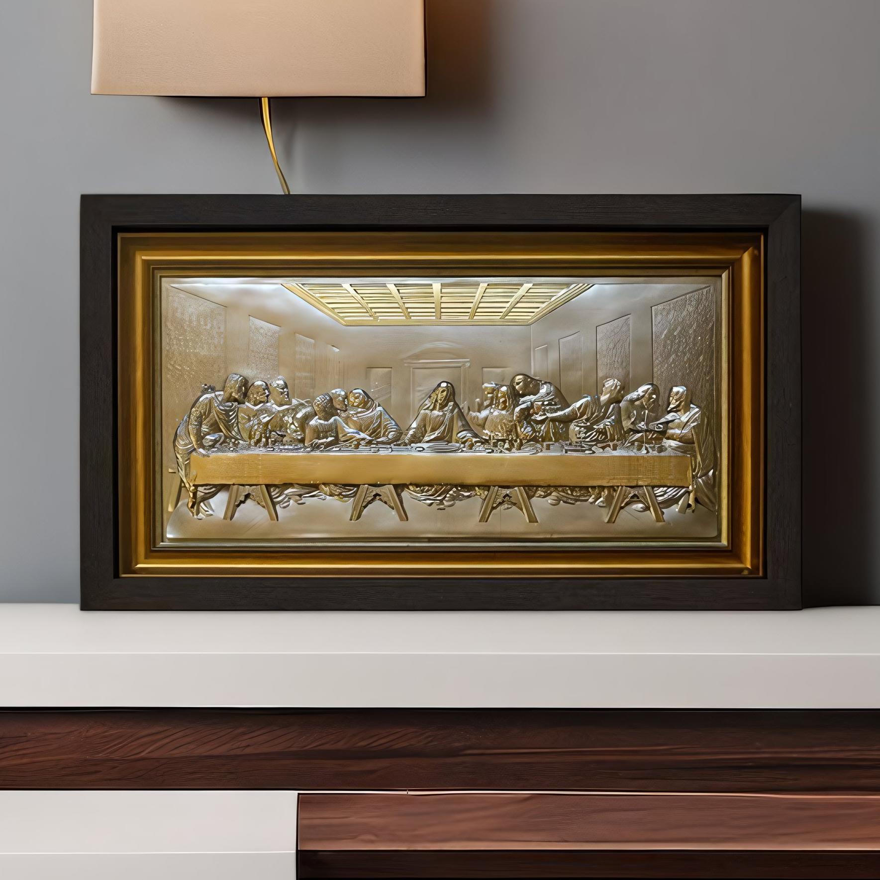 Художественное произведение Тайная вечеря, выполненное в уникальной технологии гальванопластики, просто создано для любителей искусства и красоты. Не просто картина — это произведение искусства, воссоздающее знаменитую Тайную вечерю, выполненное в металле и покрытое золотом. Прекрасное дополнение к интерьеру и отличный подарок для ценителей изысканных вещей.