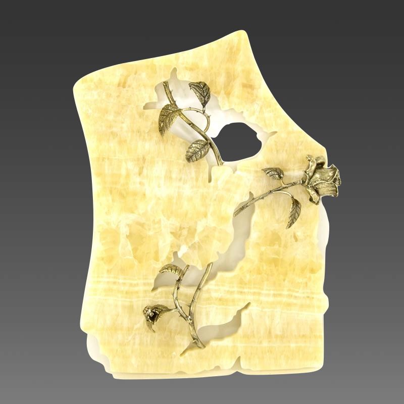 Бронзовая картина на ониксе "Роза(нижняя)"