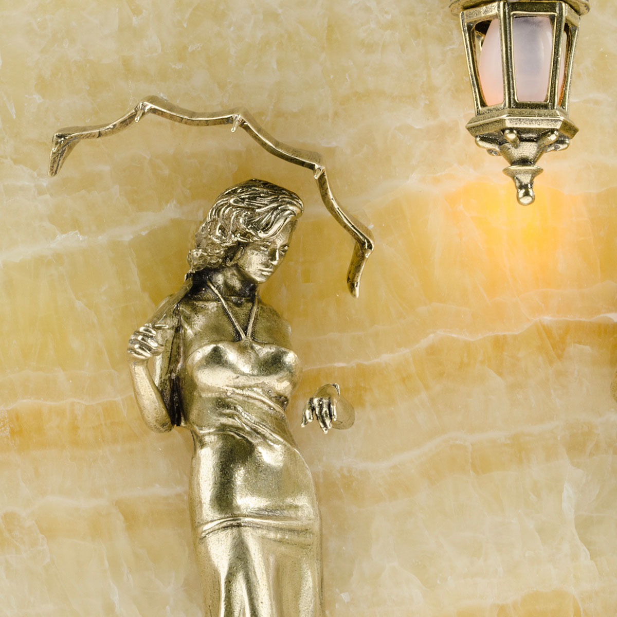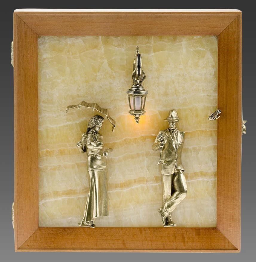 Бронзовая ключница настенная "Пара. Набережная. Мост" с подсветкой