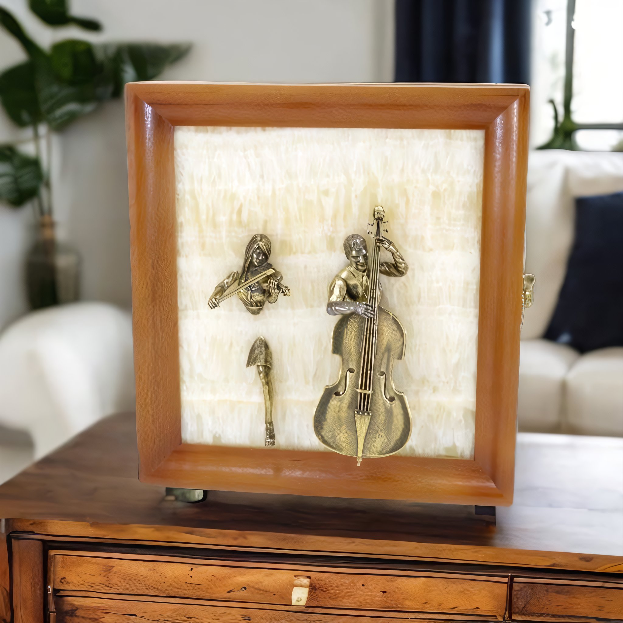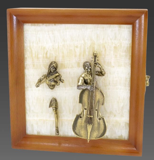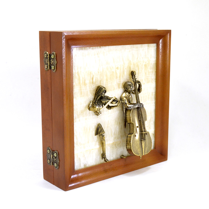 Уникальное предложение! Настенная ключница из дерева Скрипачка и контрабасист. Невероятная красота и свои миниатюрные, но в тоже время заметные размеры сделают этот аксессуар незаменимым в вашем доме или офисе. Не просто ключница, а настоящее произведение искусства! Украшена она пластиной из оникса, а бронзовая композиция в виде скрипачки и контрабасиста придают ей особый шарм и очарование.