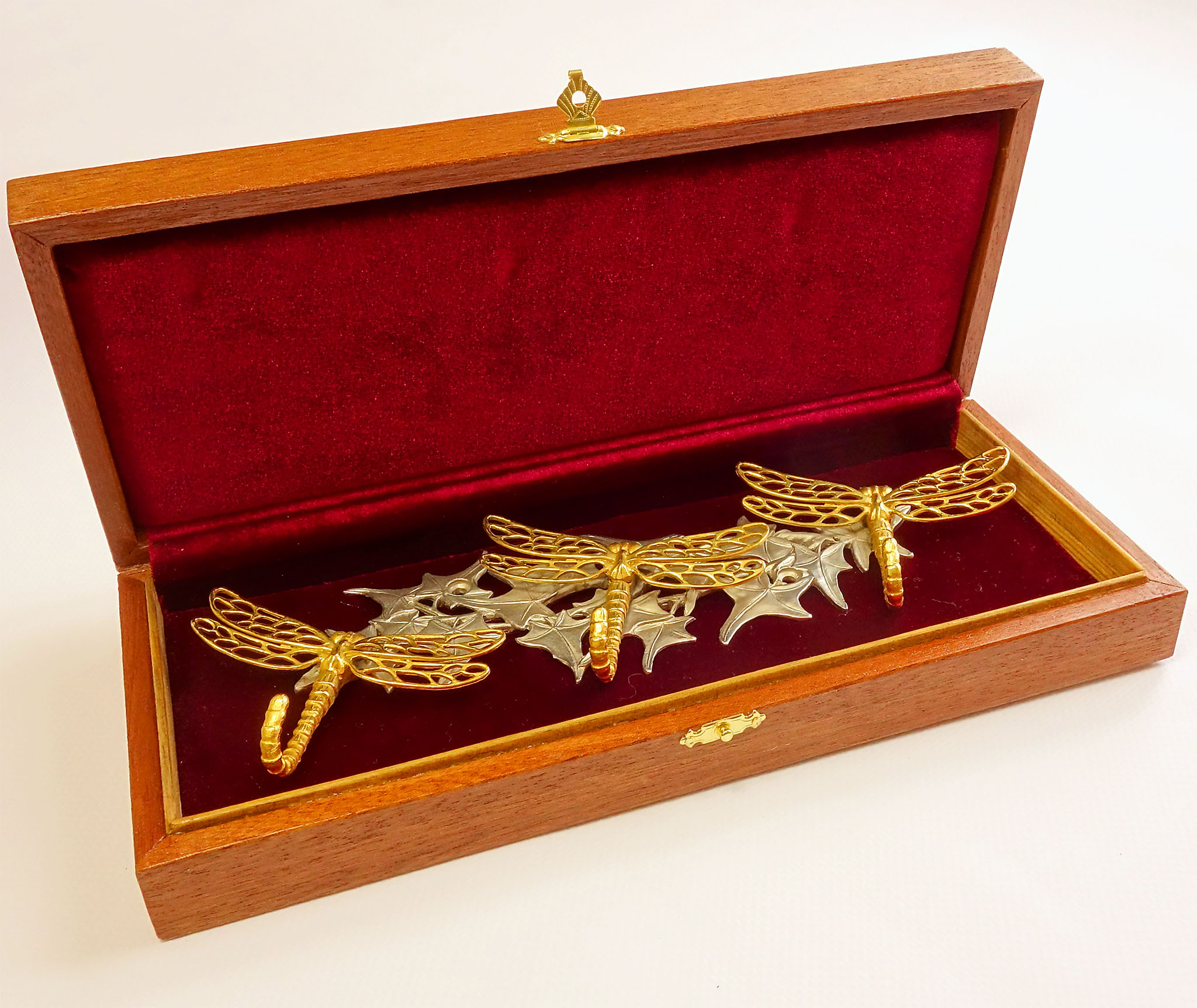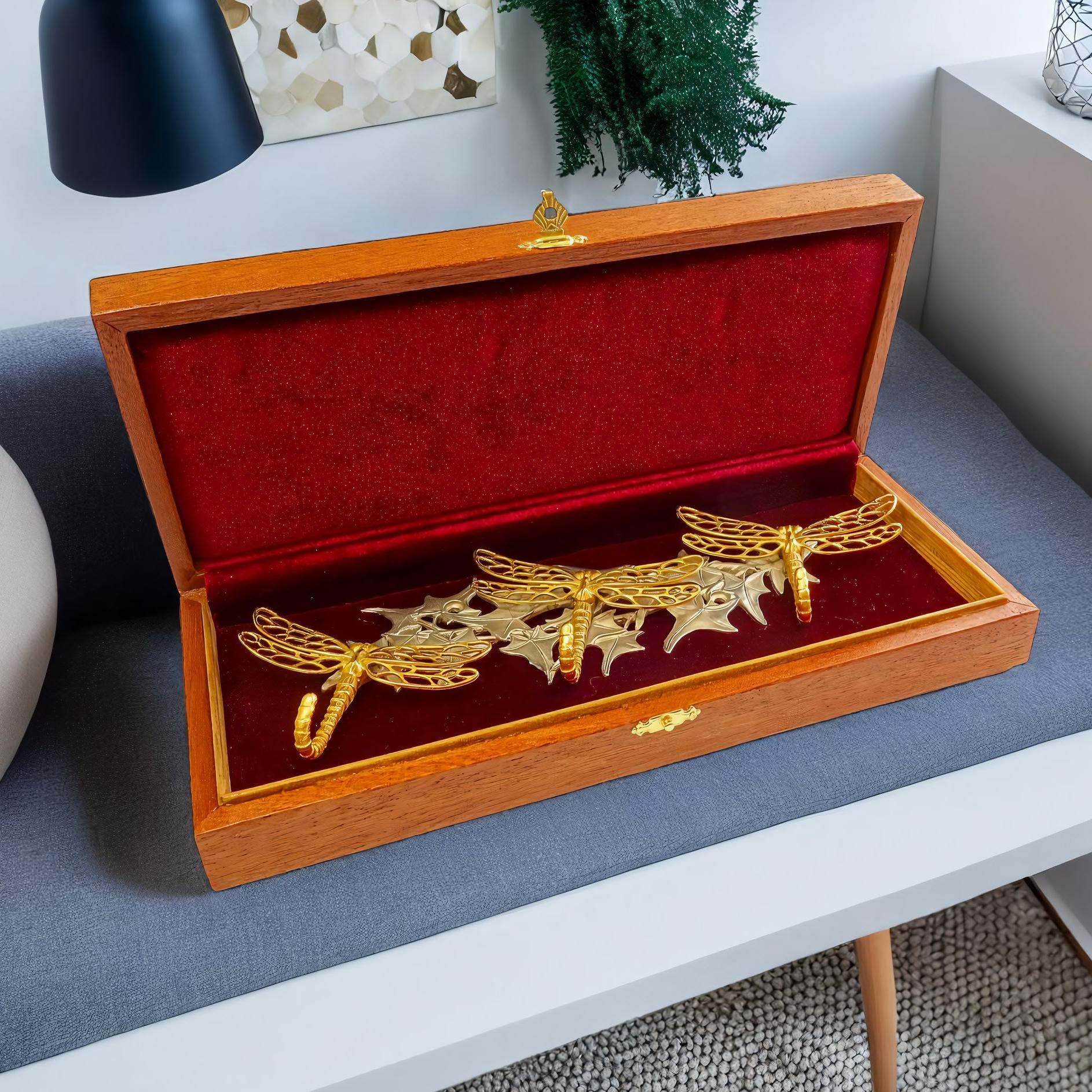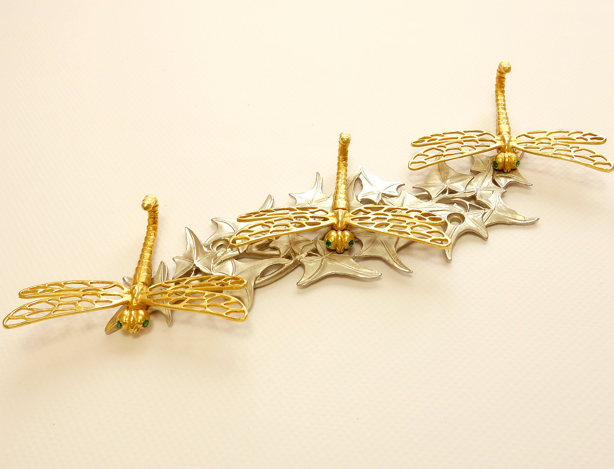 Встречайте нашу новую эксклюзивную коллекцию — Бронзовая ключница Стрекоза. Это не просто ключница, а настоящий произведение искусства, выполненное из отборной бронзы с золочением. На ключнице изображены три прекрасные стрекозы, словно замершие на мгновение, чтобы подчеркнуть и украсить ваш интерьер.