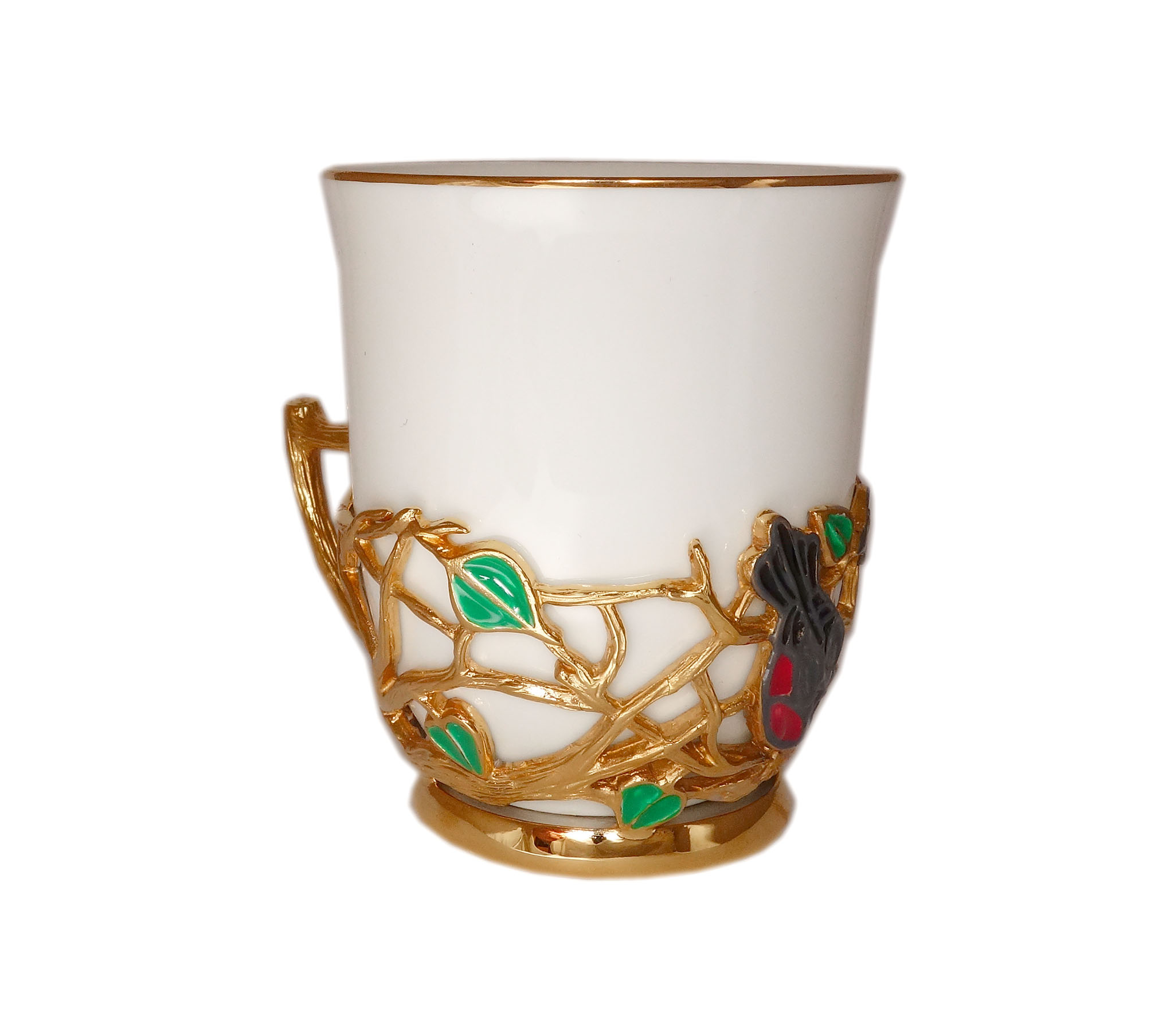 Дайте начало своему дню с нашей элегантной фарфоровой кофейной чашки Птички. Эта один из наших самых популярных товаров, не просто бесподобная по красоте, но и отлично сочетающая в себе дизайн и функциональность. Она идеально подходит для теплой функциональности кофейных напитков и включает собственный подстаканник из позолоченной бронзы для добавления премиального качества.
