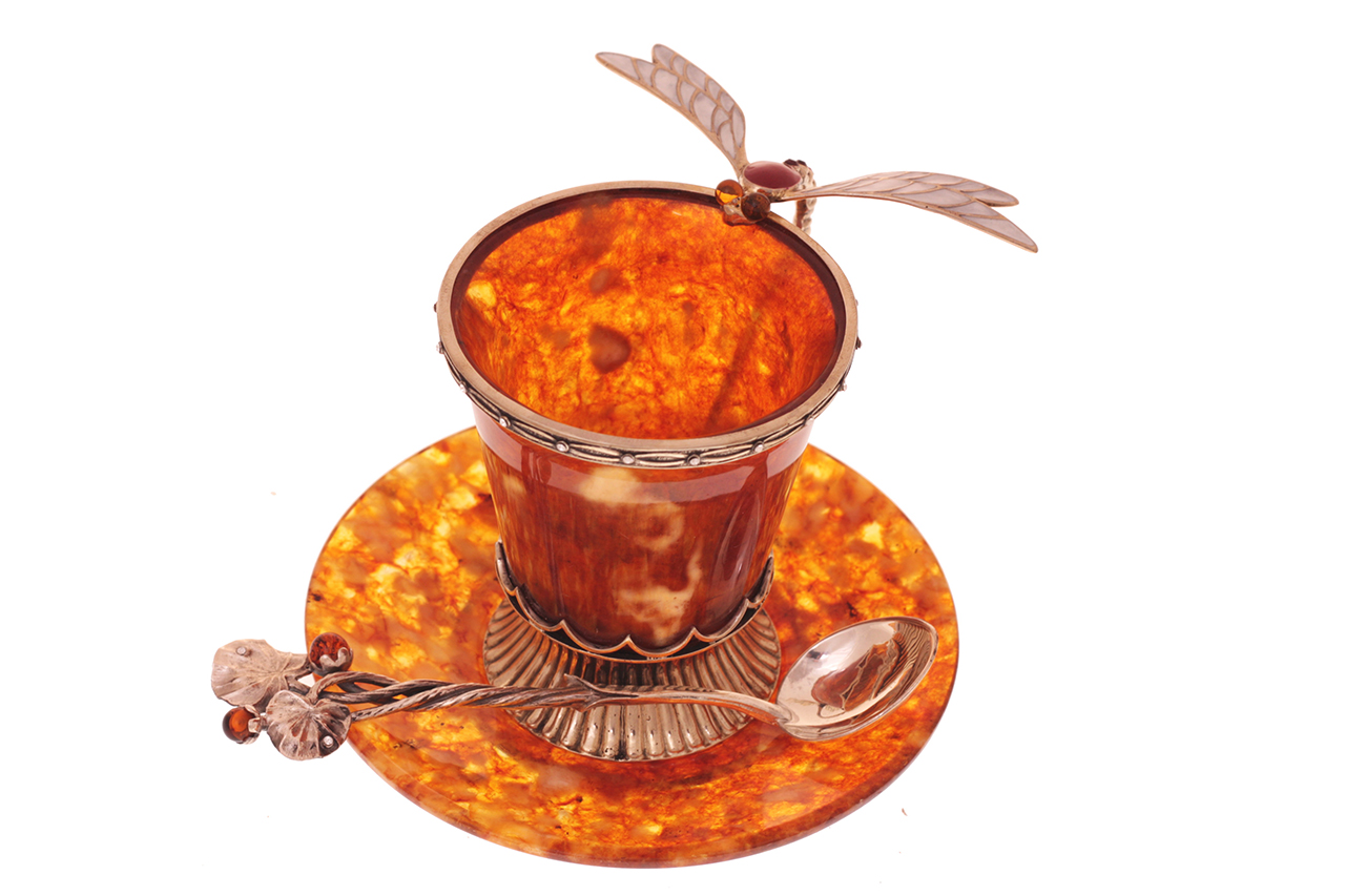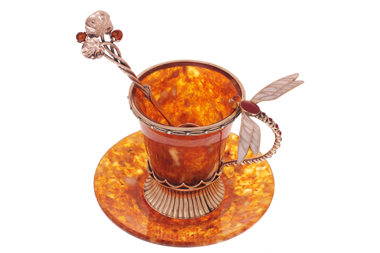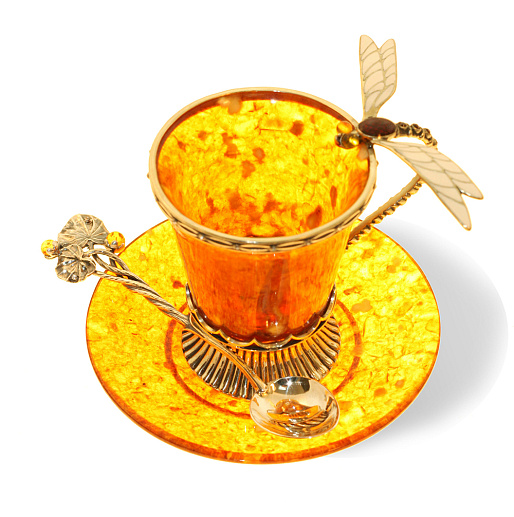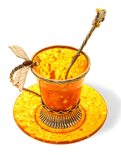 Погружаясь в мир вкуса и аромата кофе, вы почувствуете себя еще более изящными и утонченными, когда вас окружают вещи, созданные с любовью и вниманием к деталям. Наша кофейная чашка из янтаря с ложечкой и бронзовыми элементами в виде стрекозы является идеальным примером такой эстетики! |
