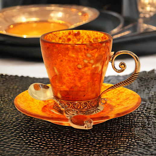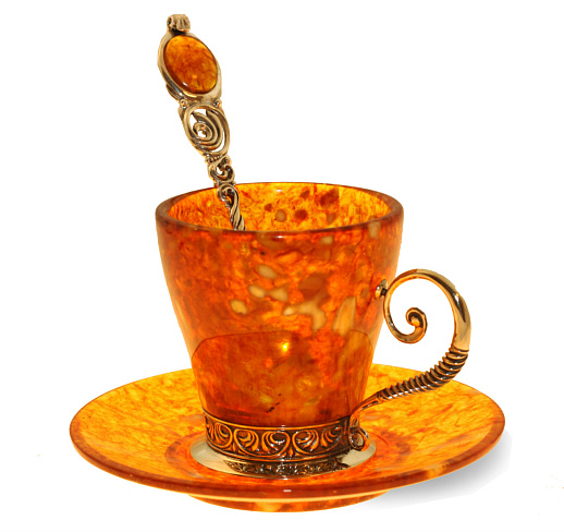 Чашка чайная из янтаря с ложечкой