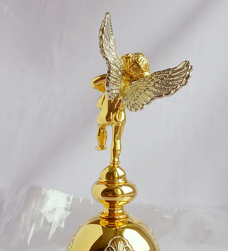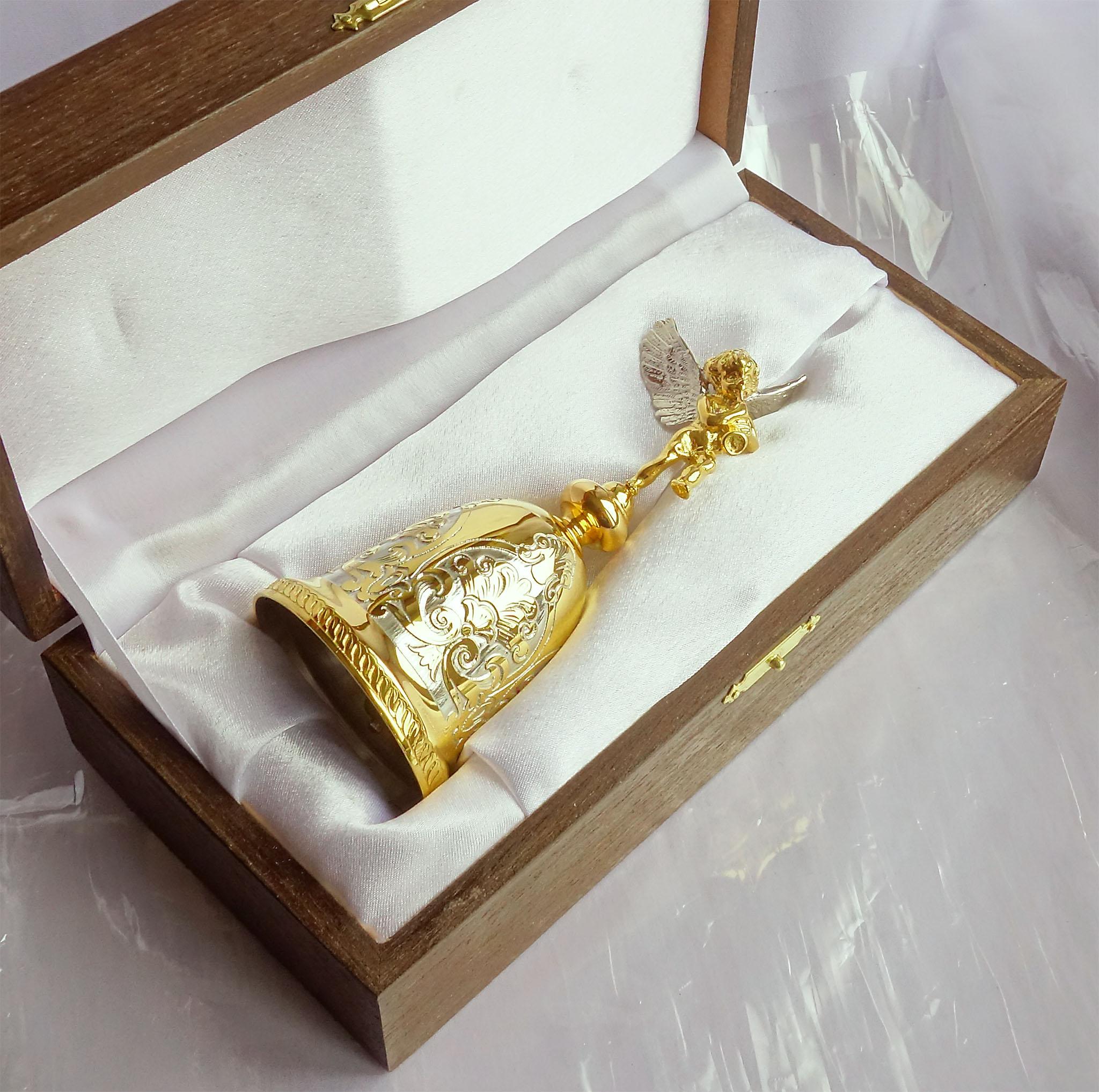 Элегантный колокольчик "Ангелок" выполнен в технике златоустовской гравюры, что делает его настоящим произведением искусства. Рукоять этого уникального предмета представляет собой позолоченную статуэтку ангела из бронзы. Ее деликатные черты и благородное позолоченное покрытие завораживают своей красотой. Этот колокольчик станет отличным дополнением к коллекции любителя антиквариата или прекрасным подарком для тех, кто ищет нечто особенное, чтобы украсить свой дом или рабочий стол. Этот колокольчик также может стать символом защиты и благополучия для его обладателя. |