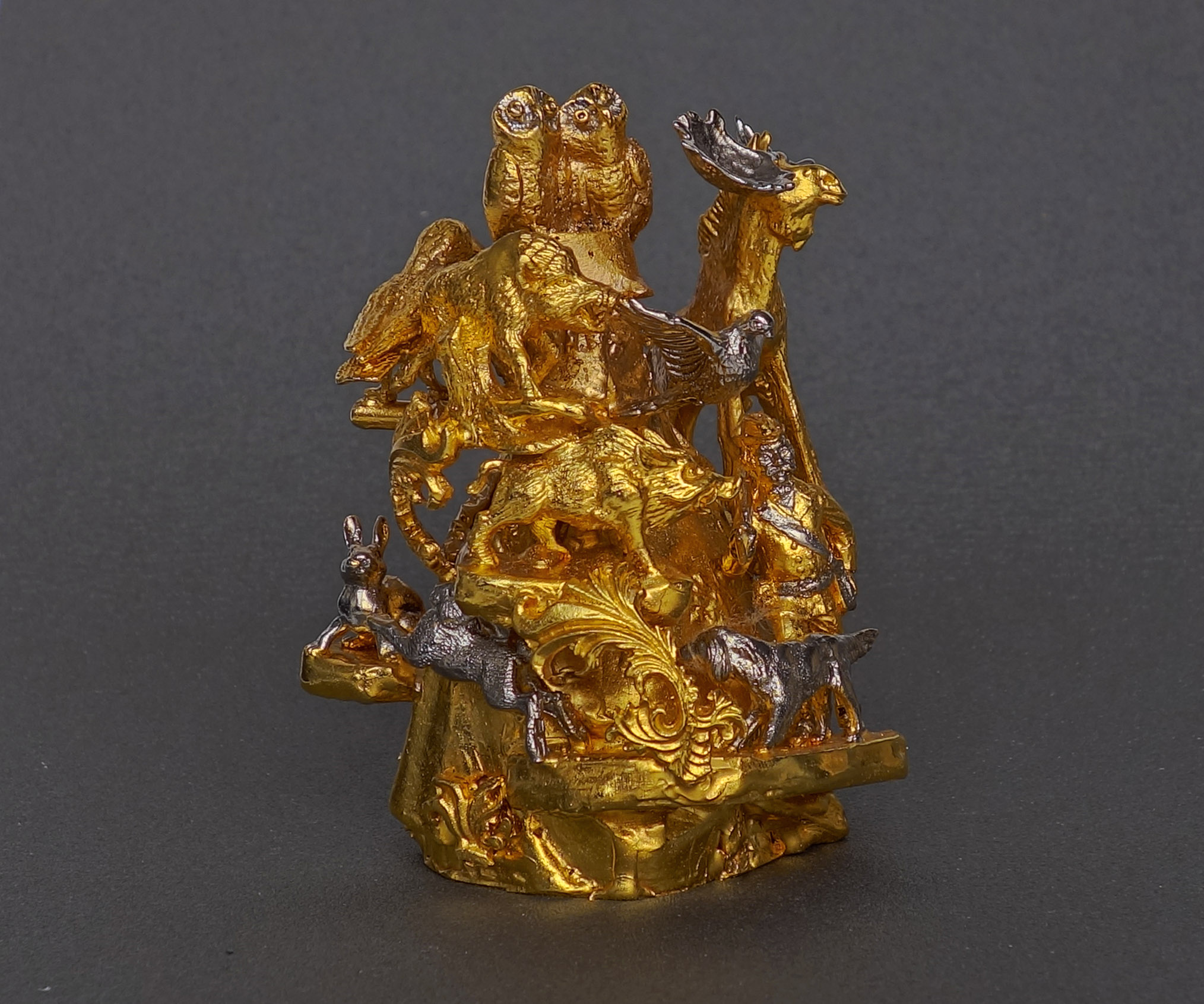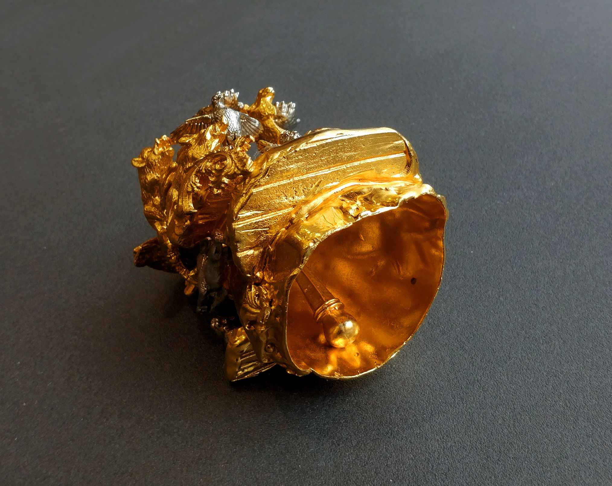 Представляем вашему вниманию Колокольчик Дикие звери выполненный из бронзы с золочением. Это не просто предмет декорации, это настоящее произведение искусства, добавляющее уют и стиль в пространство вашего дома или офиса.