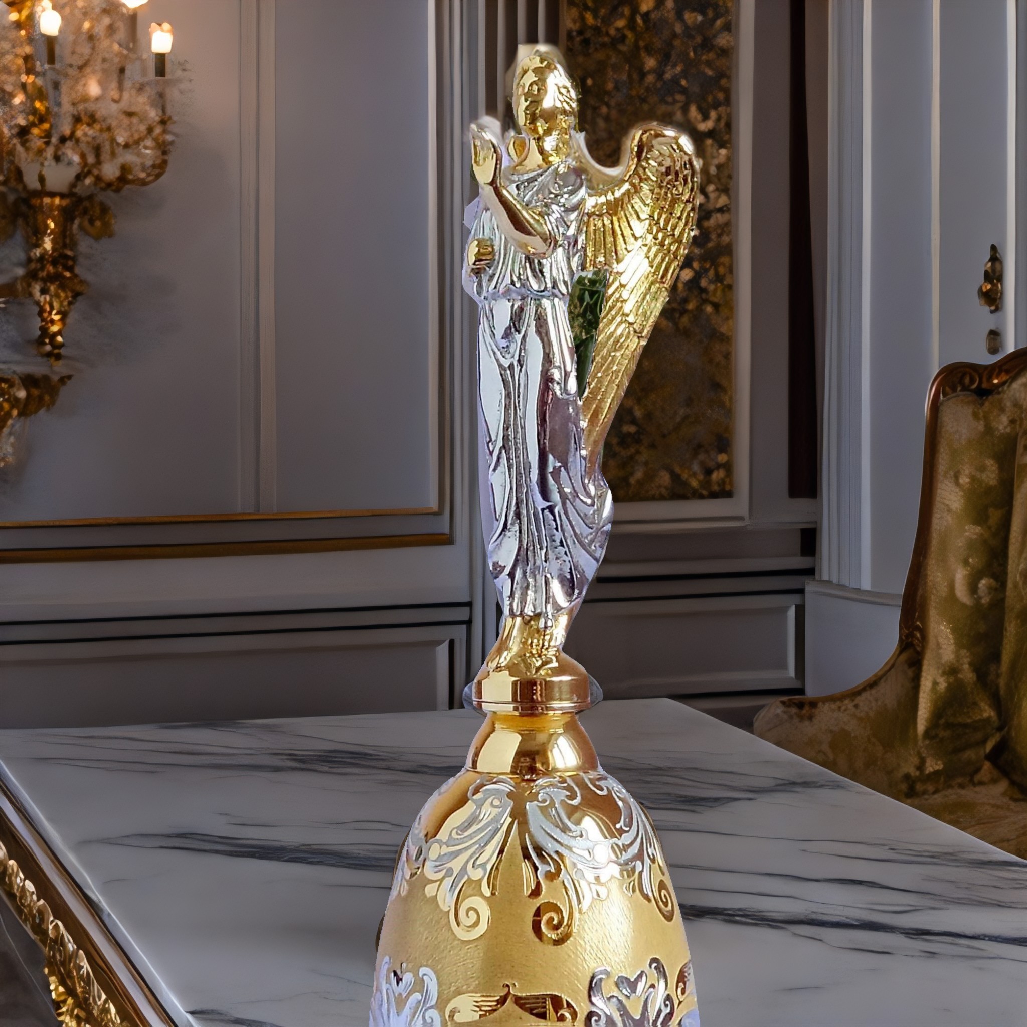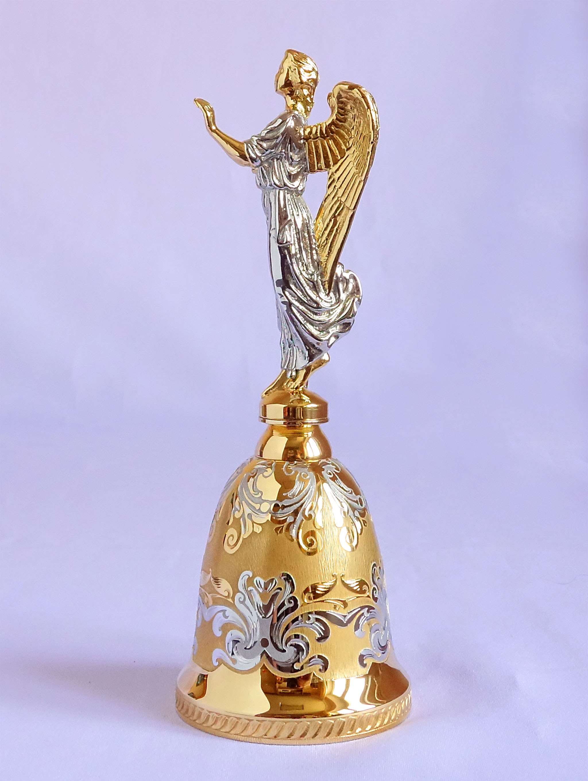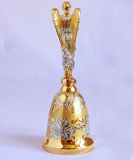 Изысканный колокольчик "Херувим" манит своей неповторимостью и глубиной исполнения. Великолепная работа в технике златоустовской гравюры придает этому колокольчику особый шарм и характер. Рукоять украшена позолоченной статуэткой херувима из бронзы, символизируя чистосердечие и божественную защиту. Этот колокольчик идеально подойдет как подарок для близких, принося в их дом благодать и гармонию. Для любителей уникальных и значимых предметов искусства данный колокольчик станет настоящим сокровищем их коллекции. |