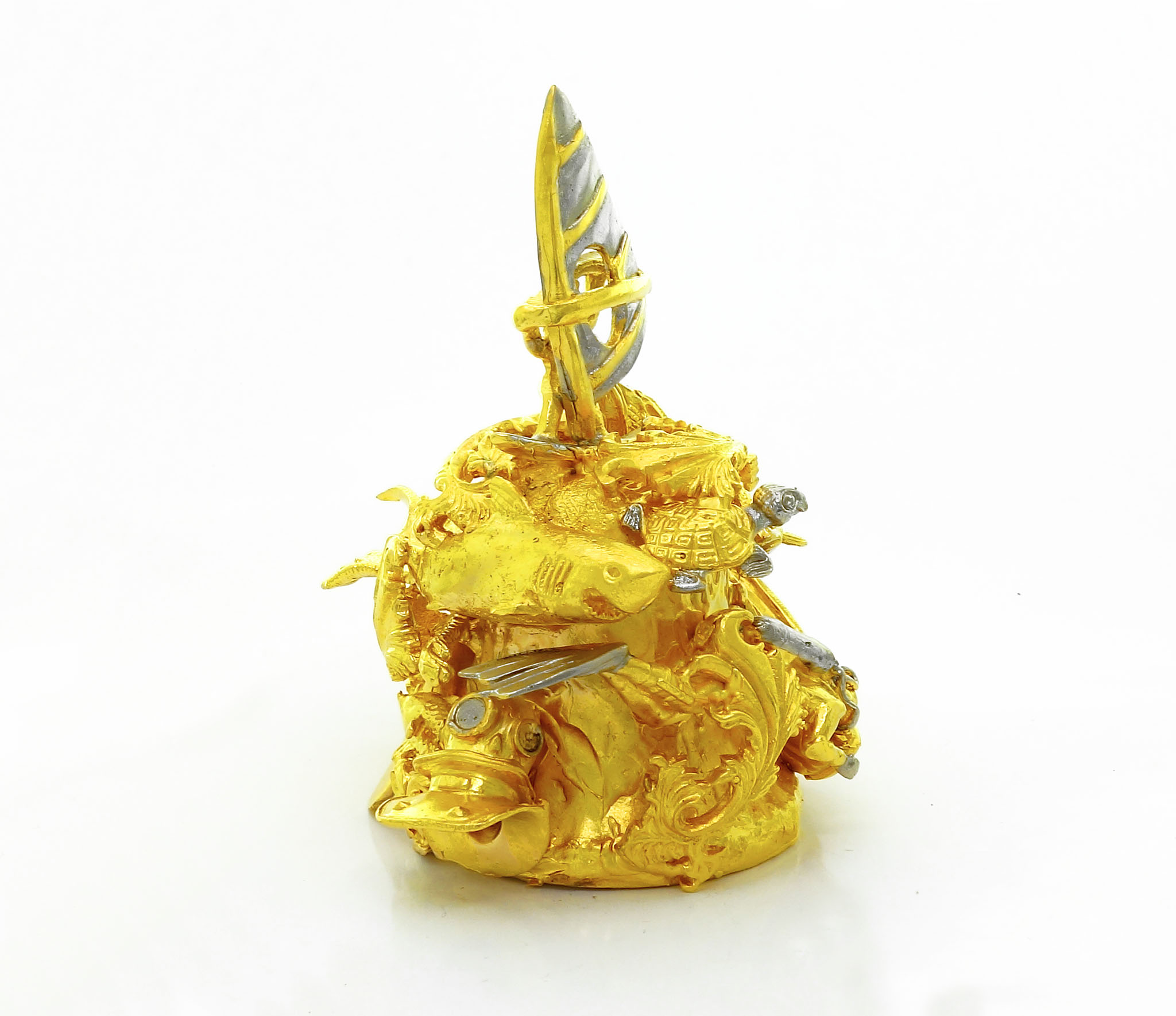 Бронзовый колокольчик "Морская фауна" в золоте.