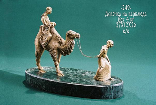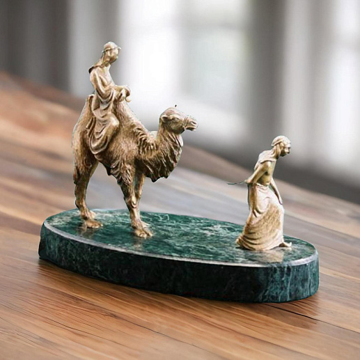 Внесите нотку экзотики в свой интерьер с уникальной бронзовой композицией Девочка на верблюде. Скульптура изображает погонщика, который ведет верблюда, на котором сидит девочка. Основание выполнено из змеевика — это придает скульптуре неповторимый и стильный вид. Это идеальный подарок для тех, кто ценит искусство и хочет придать своему дому особый шарм.