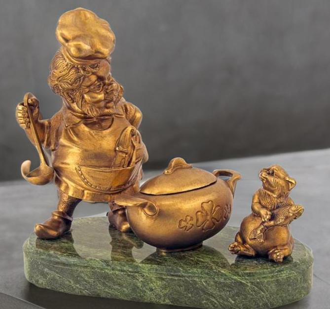 Украсьте свой интерьер необычным и оригинальным предметом декора — бронзовой композицией «Гном — повар». Эта замечательная фигурка будет идеальным дополнением любого дома, добавляя ему неповторимый уют и уникальность. Композиция «Гном — повар» выполнена из высококачественной бронзы, что гарантирует ее долговечность и устойчивость к внешним воздействиям. Этот маленький повар прекрасно смотрится на кухне, в гостиной или даже на рабочем столе, создавая в каждом помещении особую атмосферу.