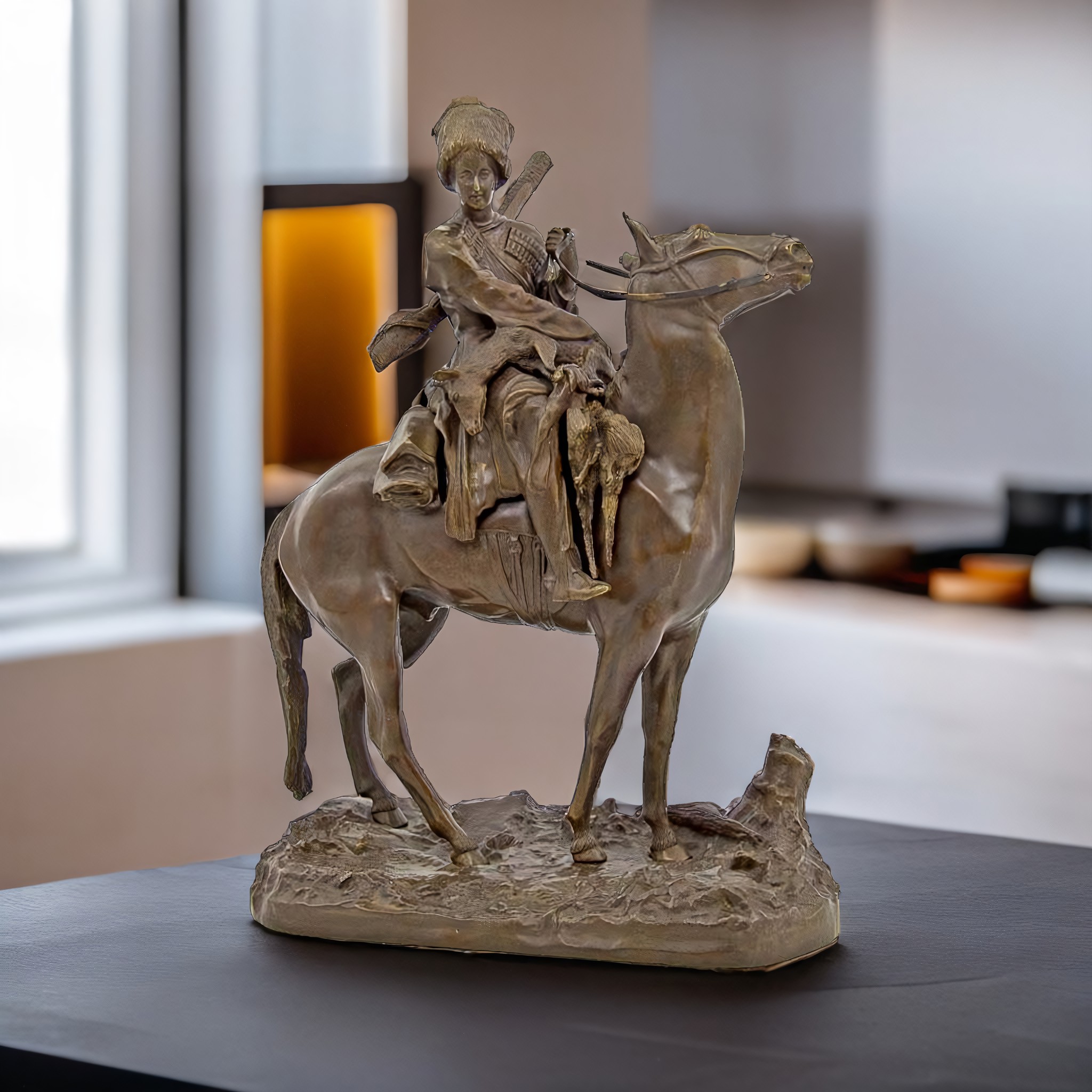 Бронзовая композиция "Горец на лошади с козлёнком"