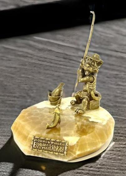 Мы рады представить вам потрясающую бронзовую композицию Котофей-рыбак, которая станет идеальной декорацией для любого интерьера. Уникальное изделие, представляющее собой кота в одежде рыбака, ловящего рыбу удочкой на фоне оникса, излучает несравненную изысканность. Созданная парой талантливых мастеров, эта композиция возможно станет игривым украшением вашего дома или великолепным подарком для любителя искусства. Многих ловит на крючок ручная работа, высокое качество и внимание к деталям. Котофей-рыбак не просто композиция, а произведение искусства, которое будет восхищать вас и ваших гостей долгие годы! Изготовлено из наилучшей бронзы, на высококачественной основе из оникса, которая придаёт творению дополнительной глубины и ценности. |