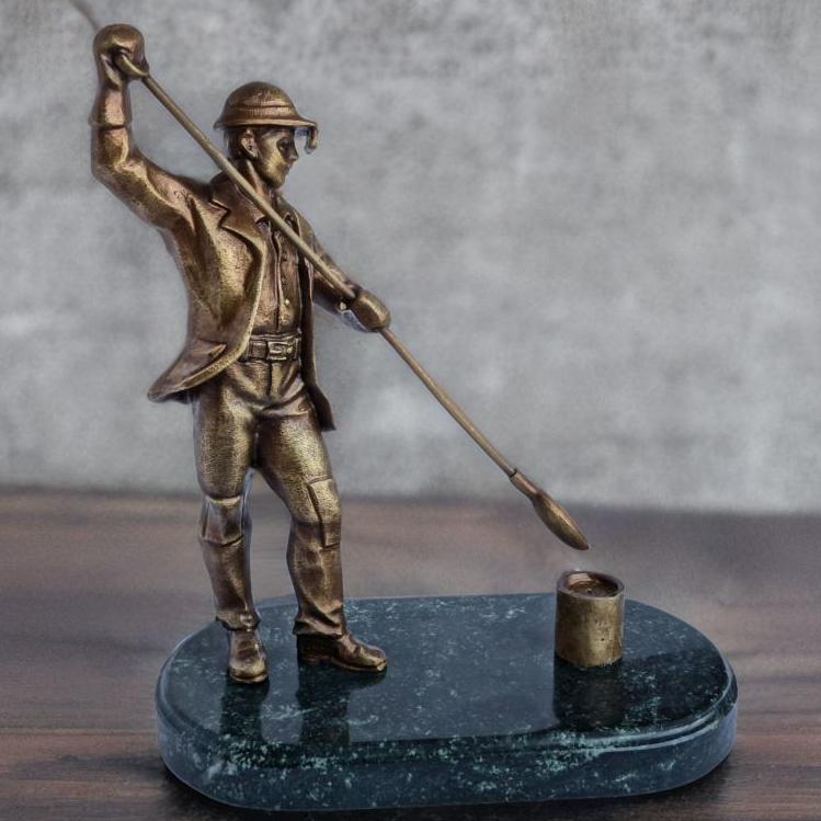 В нашем ассортименте появилась замечательная бронзовая композиция Металлург. Это идеальный вариант для тех, кто ценит уникальность и оригинальность. Скульптура выполнена из высококачественной бронзы и устанавливается на основание из змеевика, который славится своей прочностью и неповторимым рисунком. Мастер, работавший над созданием этого произведения искусства, вложил в него не только свое мастерство, но и душу. В этой скульптуре нашел отражение весь труд и мужество металлурга, его вклад в развитие промышленности и нашей страны в целом. «Металлург» — это не просто скульптура, это настоящая работа искусства, вызывающая восхищение своим мастерством выполнения и глубоким смыслом! |
