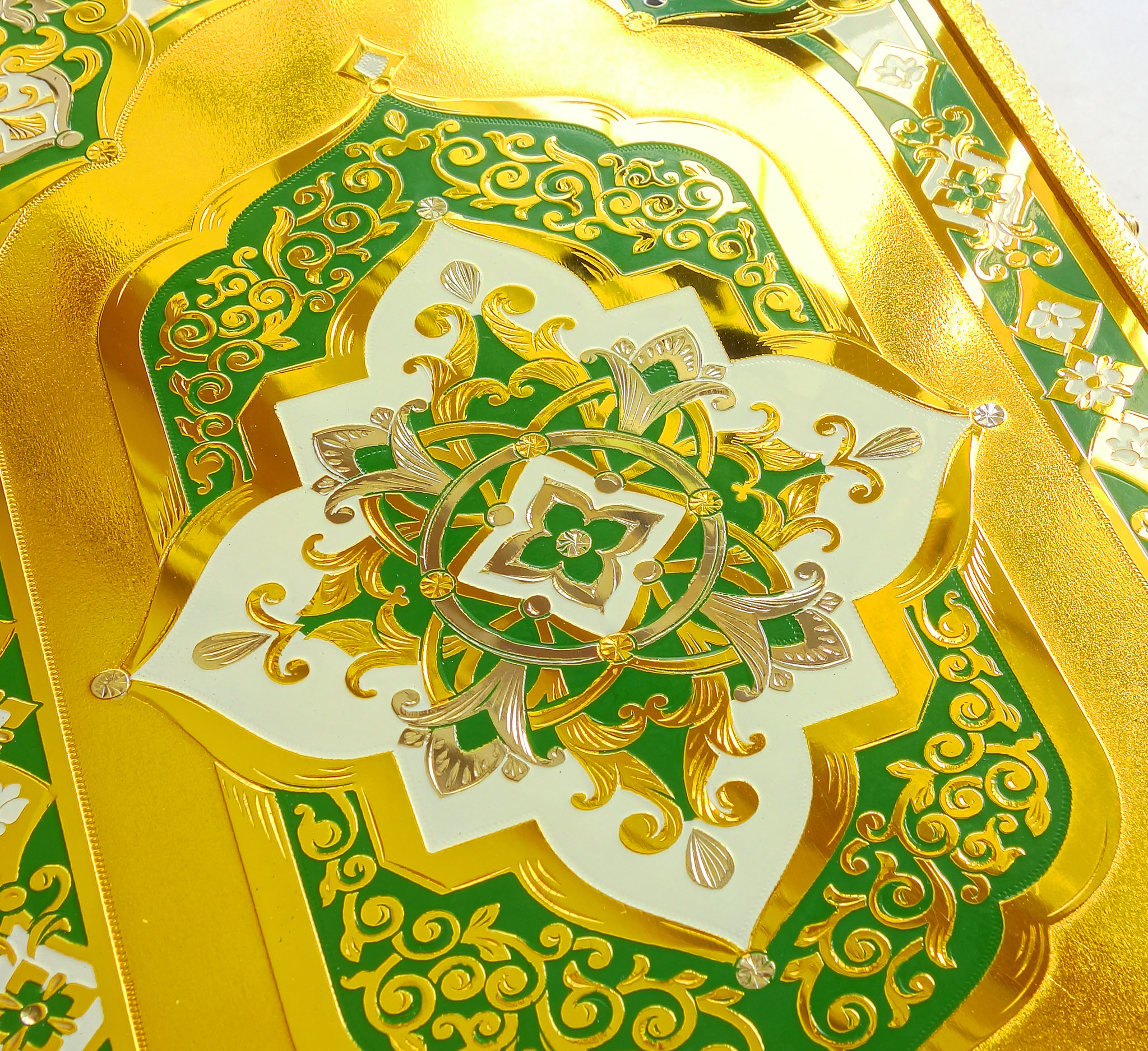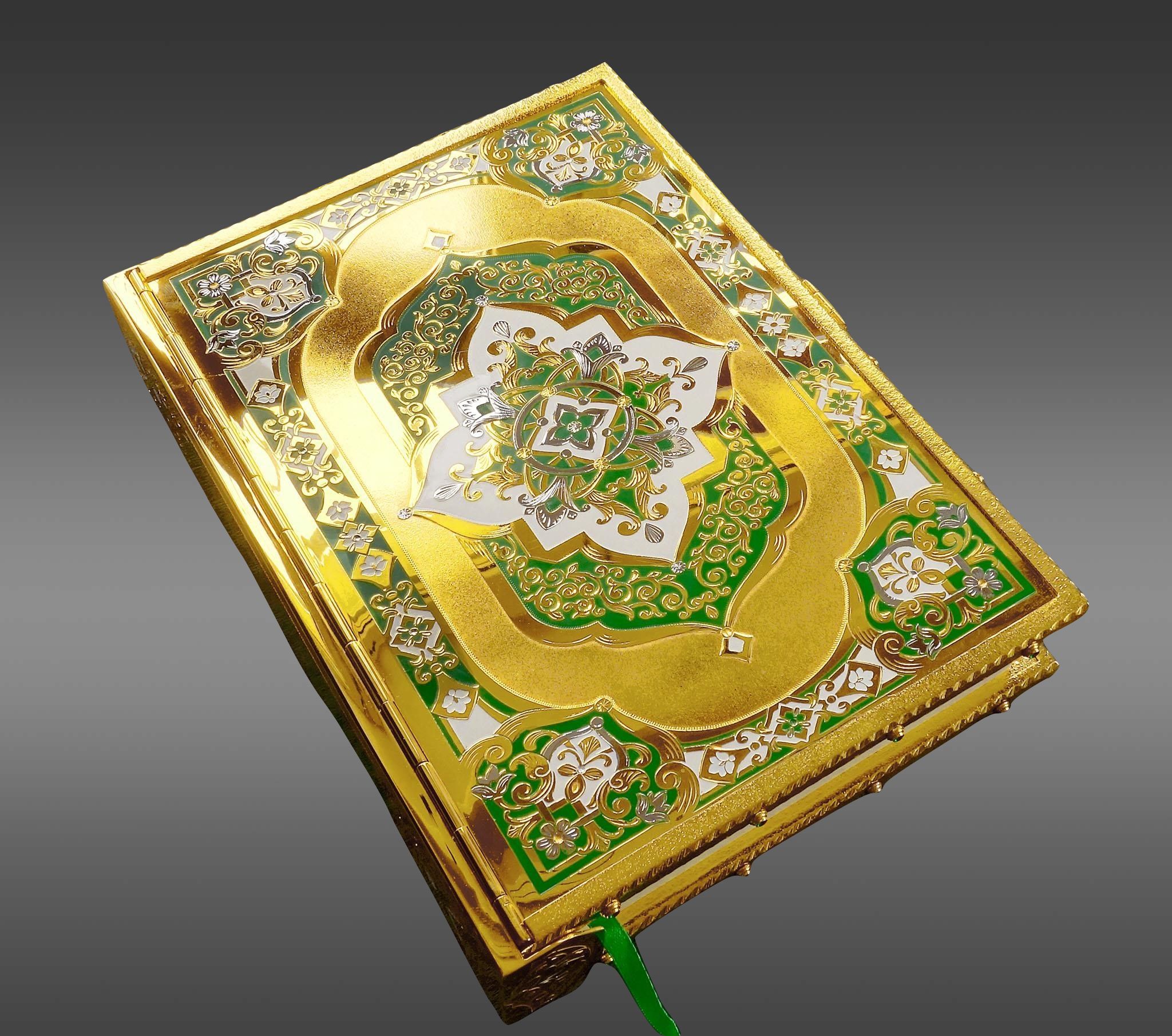 Приобрели у вас в качестве подарка на свадьбу родственником Коран. Книга смотрится очень красиво, солидно, дорого. Сразу видно, что потрудились над создание этого чуда ваши мастера. |