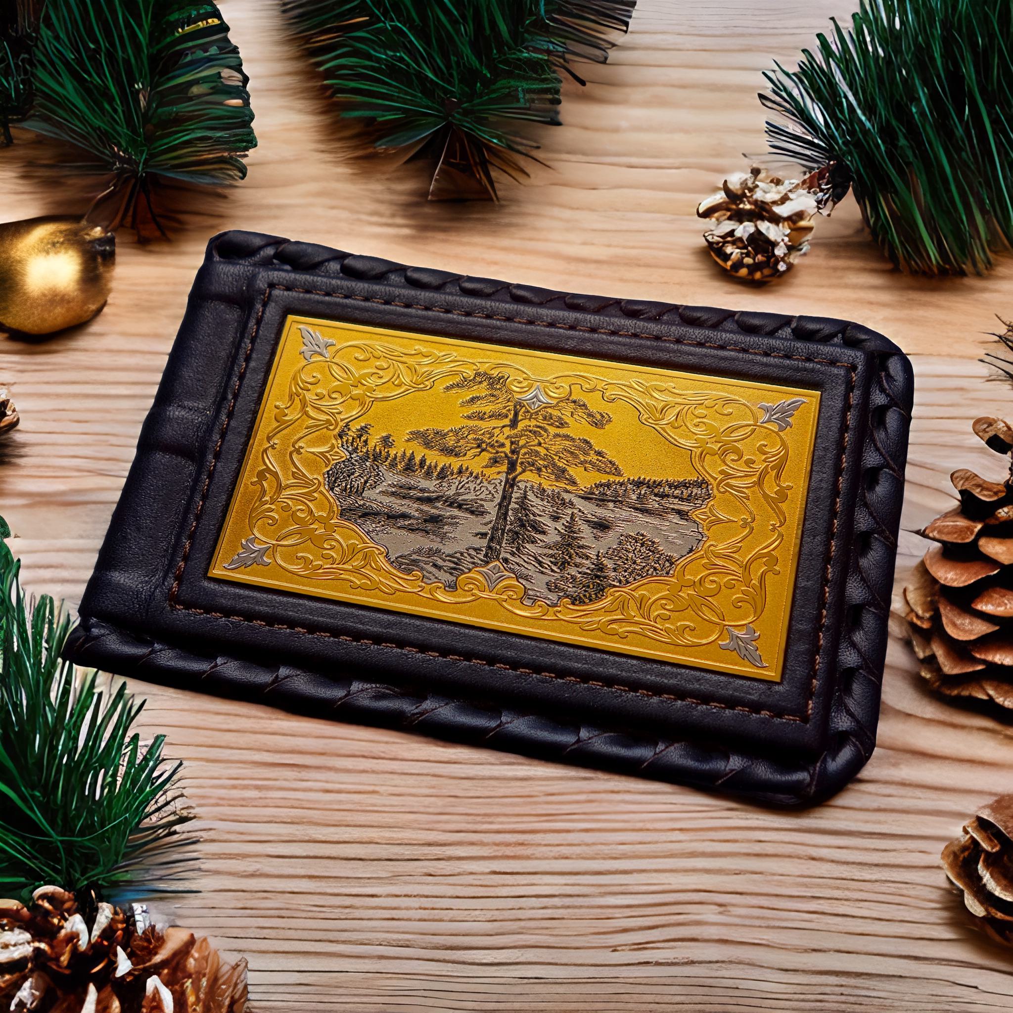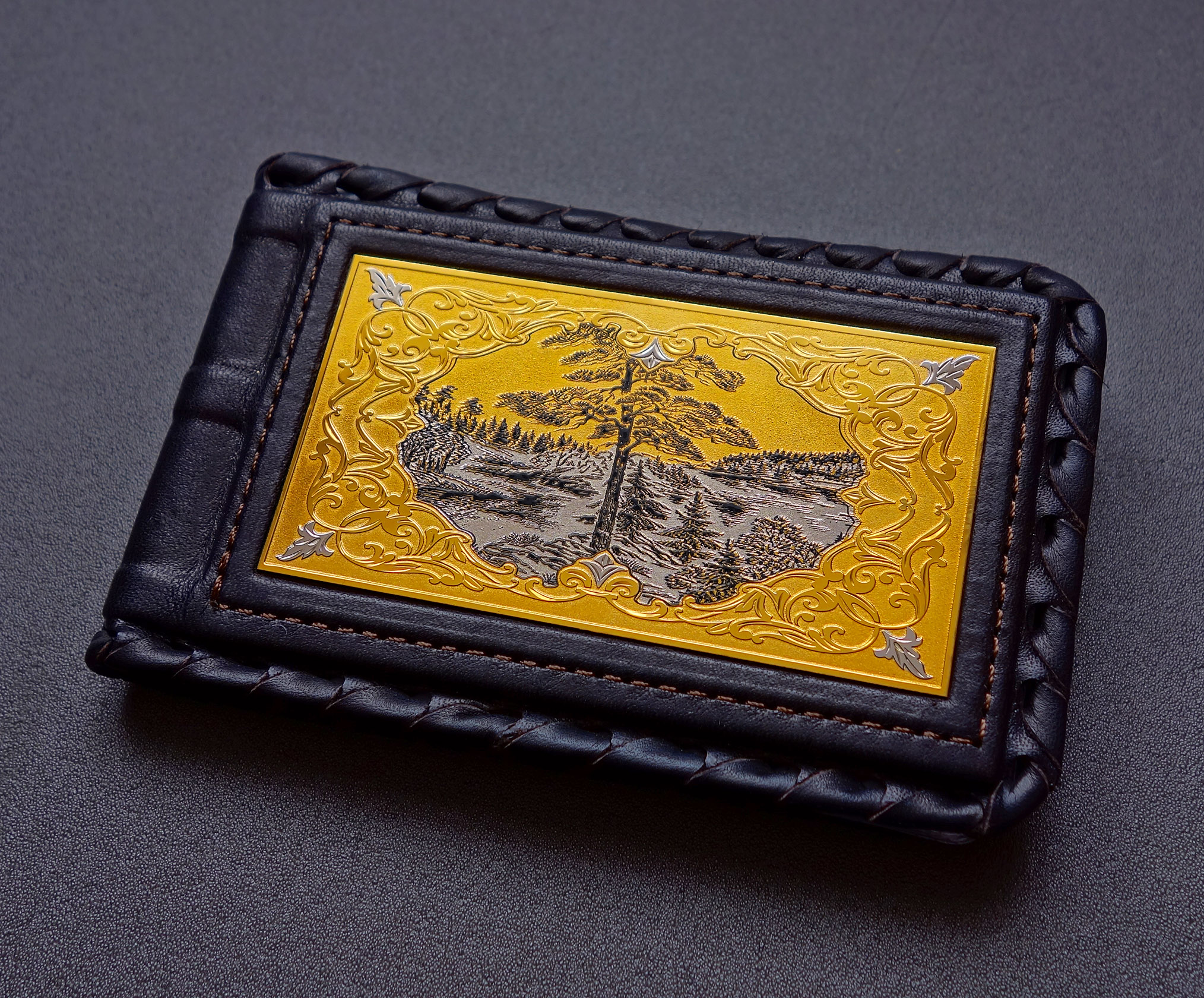 Изделия из кожи — это вечная классика и верный выбор для тех, кто ценит качество, стиль и надежность. Предлагаем вашему вниманию элитную кожаную визитницу Природа Урала, ручной работы из города Златоуст. Изделие выполнено из натуральной высококачественной кожи и украшено по уникальной технологии златоустовской гравюры с золочением.
