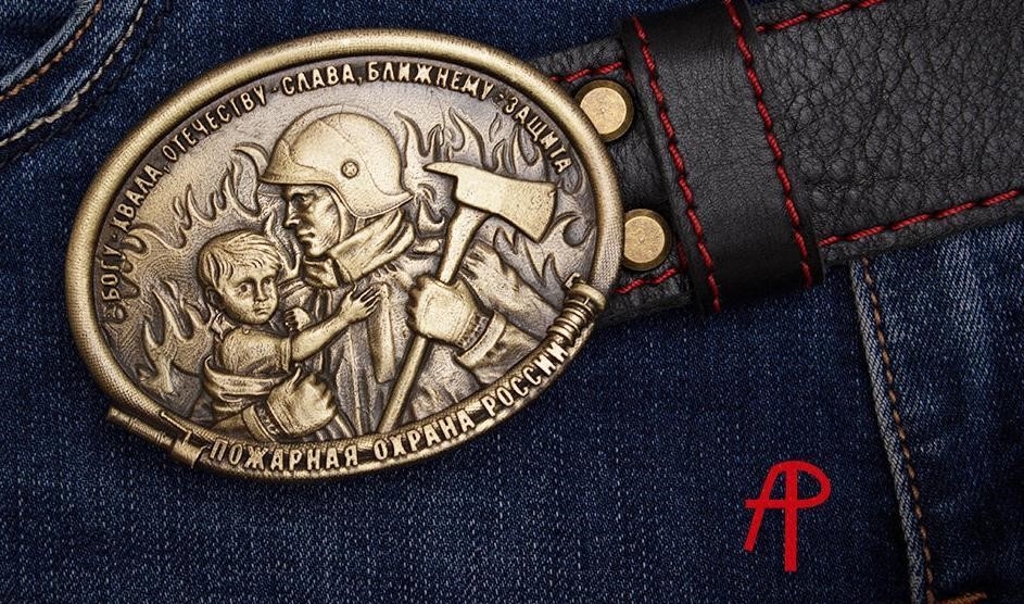 Кожаный ремень "Пожарная охрана" пряжка отлита из сплава бронзы, обработка производится в ручную мастерами чеканки и полировки. Полоса изготовлена из натуральной кожи , прошита лавсановой красной нитью |