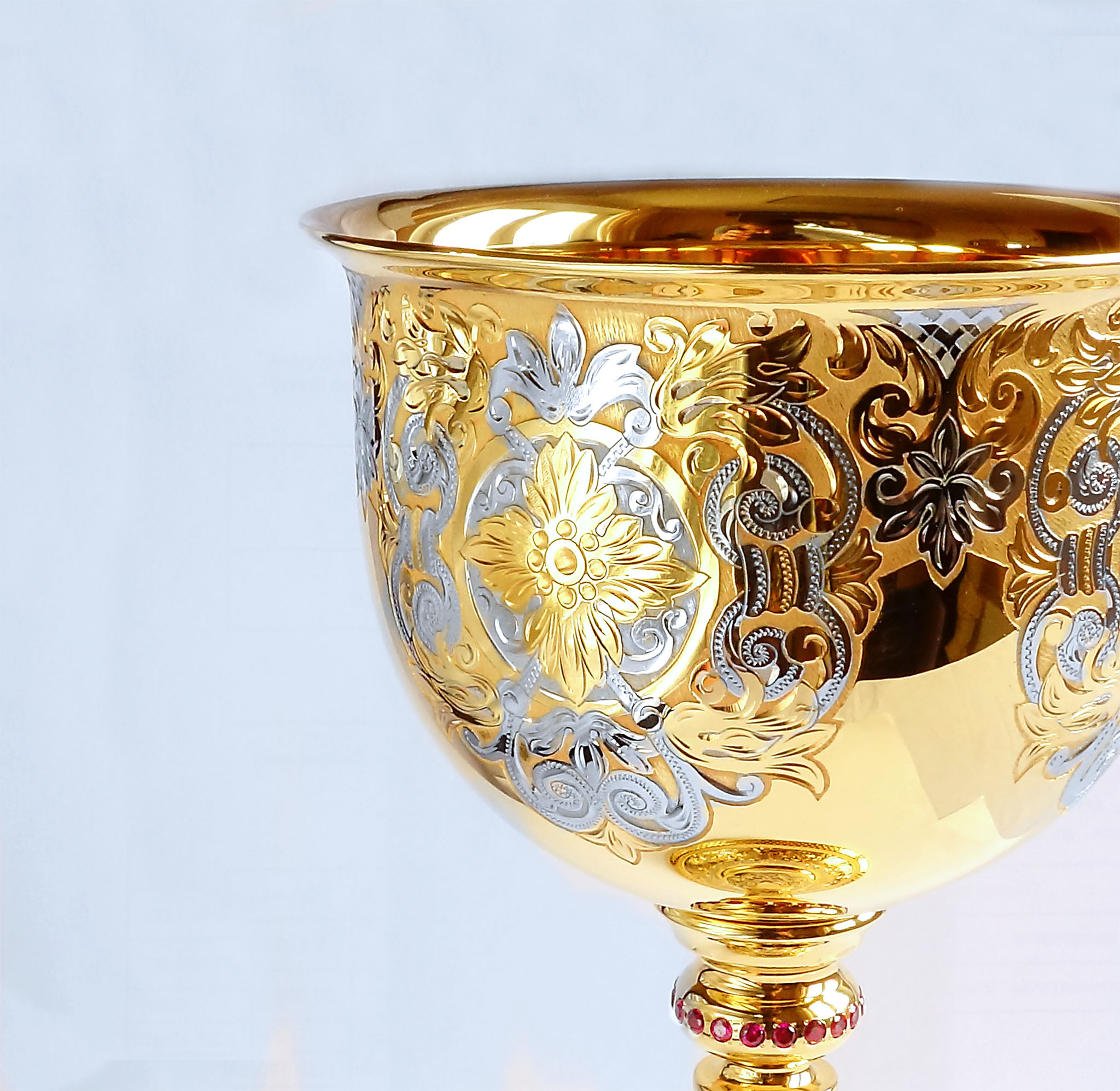 Представляем Вашему вниманию этот изысканный подарочный кубок для вина "Золотой" из Златоуста. Выполненный в богатом золотом оттенке, он будет прекрасно смотреться на любом столе. Кубок идеально подойдет для торжественных событий, включая свадьбы, юбилеи, или особые семейные праздники. Это также может быть прекрасным подарком для любителей вина или для тех, кто ценит качественные, ручной работы предметы искусства. Наслаждайтесь благородным напитком, наливая его в этот роскошный кубок. |