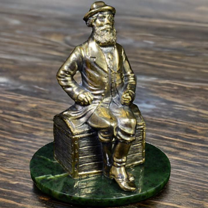Бронзовый сувенир "Купец" на подставке из нефрита - это уникальное произведение искусства, которое отражает упорство и предприимчивость купца. Изготовленный из латуни и бронзы и покрытый золотом и никелем, этот сувенир имеет размеры 120x120x140 мм и вес 1.4 кг. Процесс создания включает в себя обработку камня, художественное литье, изготовление мастер-модели, изготовление матрицы, изготовление восковки, отливку из бронзы, механическую обработку, полировку и патинирование. Это прекрасный подарок для любителей искусства, коллекционеров или любого, кто ценит уникальные и красивые предметы. Сувенир станет идеальным подарком для любого случая. |