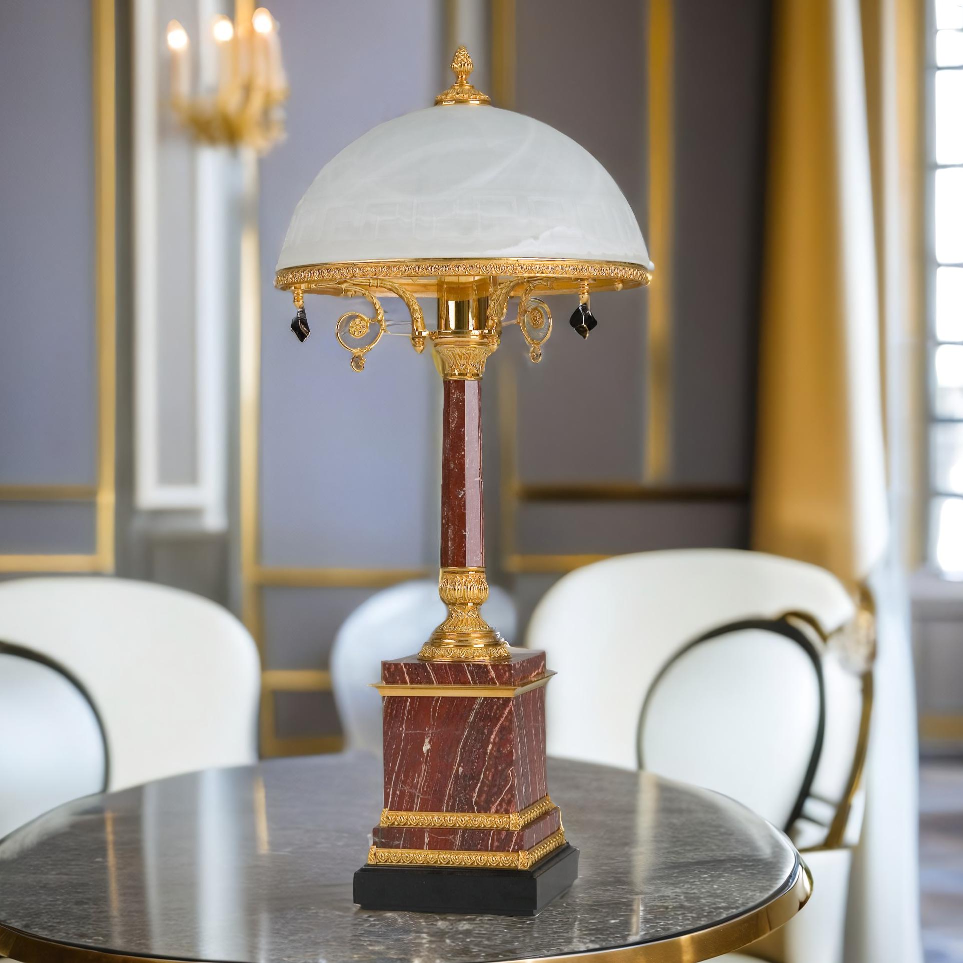 Восхитительное сочетание яшмы и золотой бронзы придаёт лампе Премьер неповторимый шарм и элегантность. Этот аксессуар станет ярким акцентом в обставленном с оглядкой на искусство помещении.