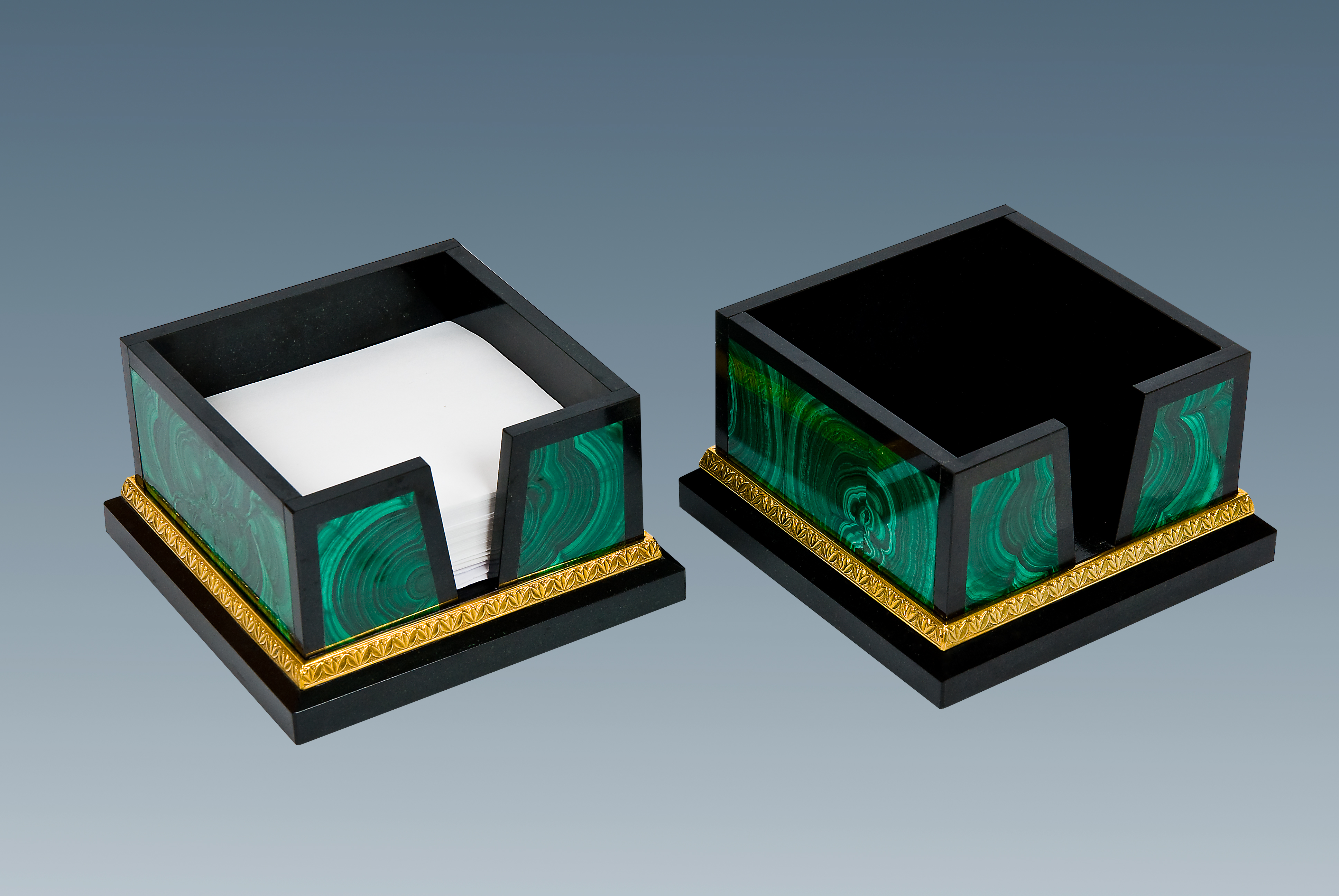 Наш лоток из малахита — это не просто утилитарный предмет. Это произведение искусства, обладающее роскошью и элегантностью, которые делают его незаменимым дополнением любого кабинета или домашнего офиса.