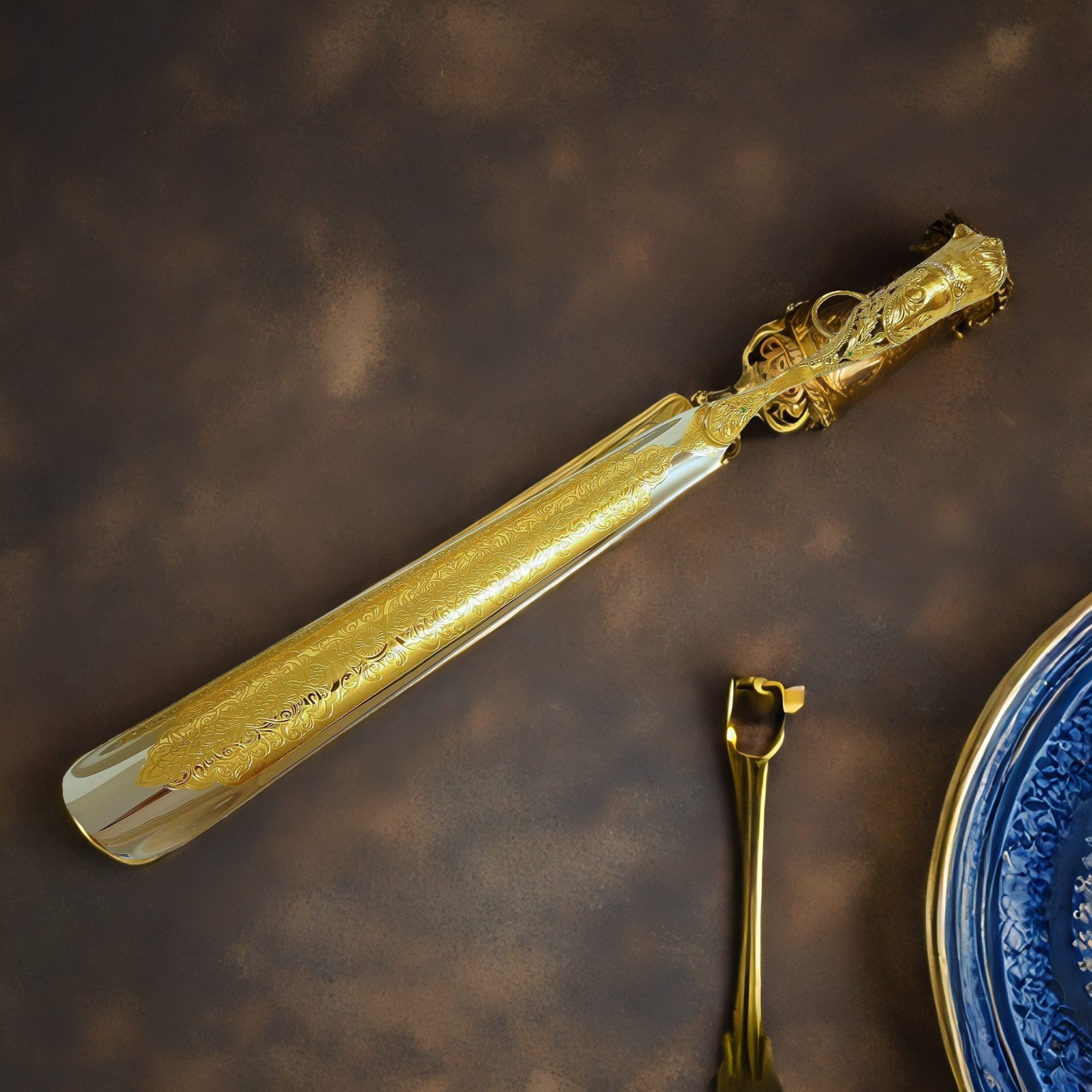 Главная > Подарки по материалам > Изделия из Бронзы > Интерьерная бронза > Ложки для обуви > В золоте