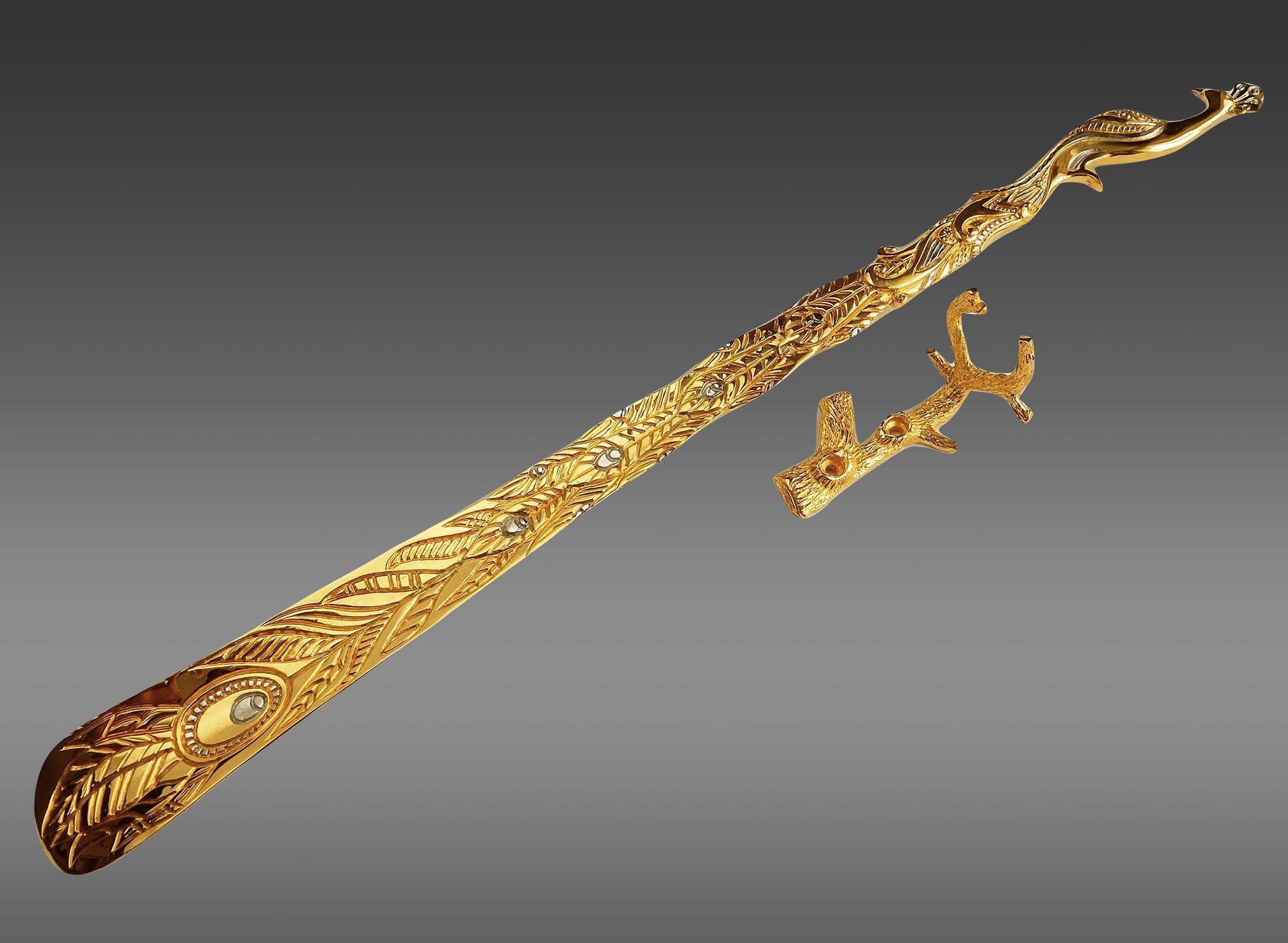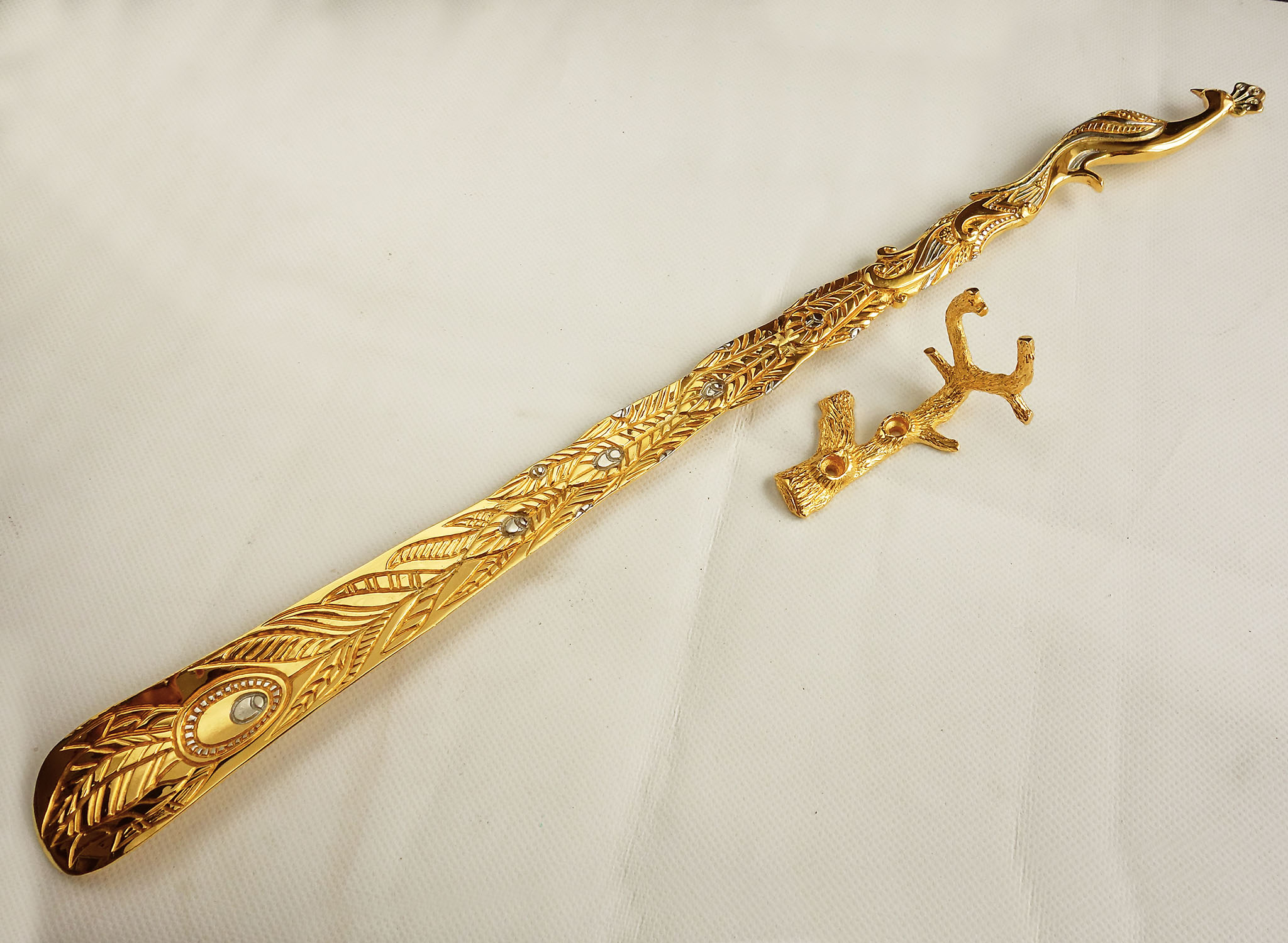 Подарочная ложка для обуви "Павлин". Позолоченная