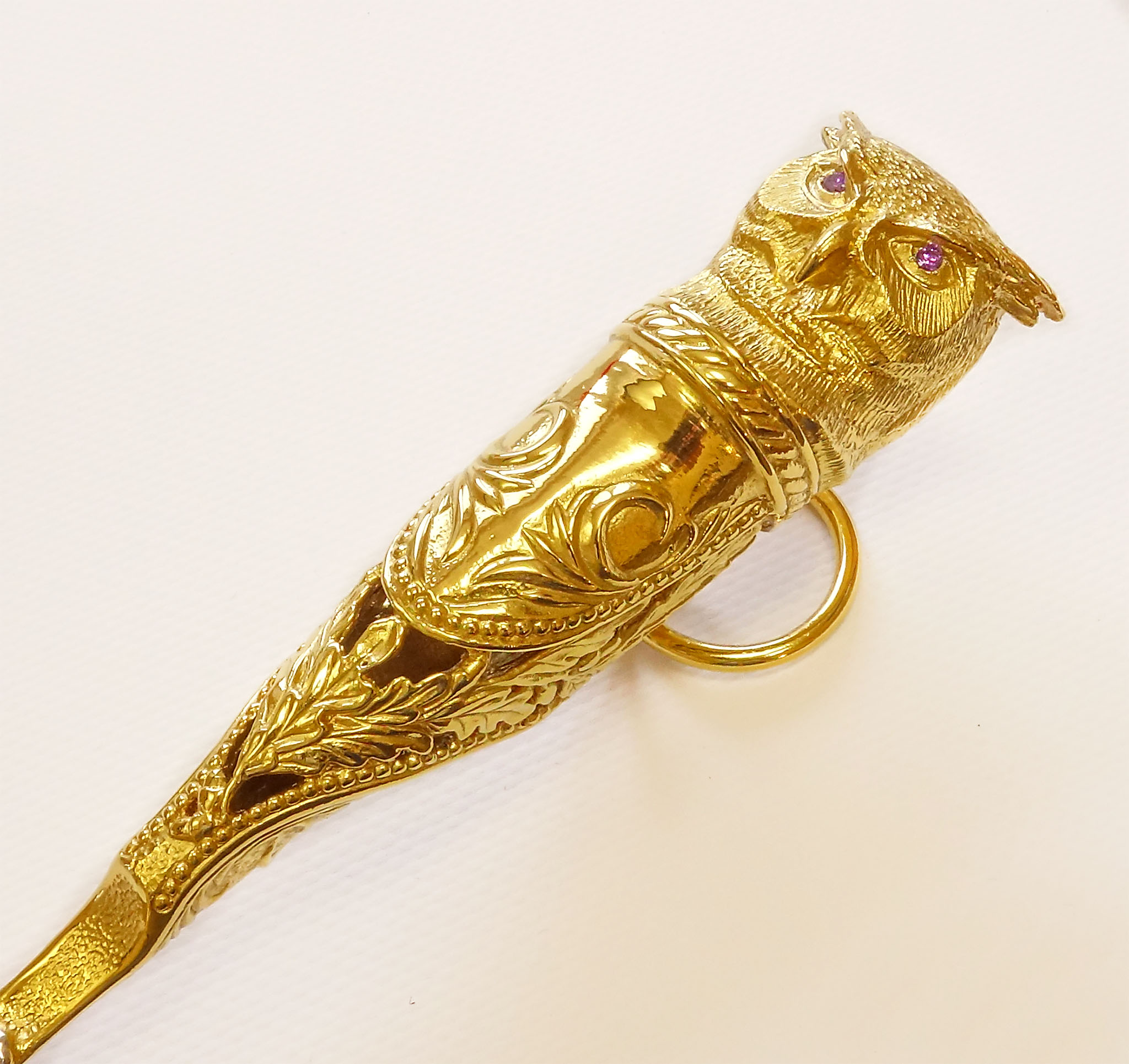 Эта уникальная декоративная обувная ложка с позолоченной рукояткой в виде головы совы станет отличным подарком для любителей искусства и коллекционеров. Она не только функциональна, но и красива, что делает её привлекательным элементом декора. Подарите эту ложку своему другу или члену семьи, интересующемуся искусством, или дополните свою коллекцию уникальных предметов. Эта ложка будет выделяться среди других подарков своей оригинальностью и изысканностью. |
