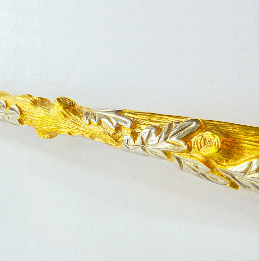 Подарочная обувная ложка "Медведь" (позолоченная). Златоуст