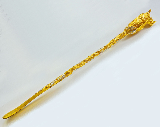 Декоративная обувная ложка "Волк". Позолоченная