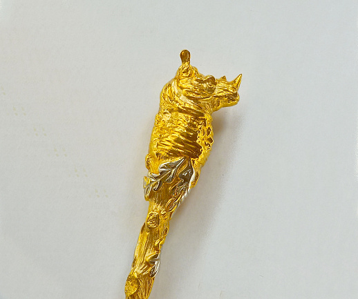 Декоративная обувная ложка "Лев". Позолоченная