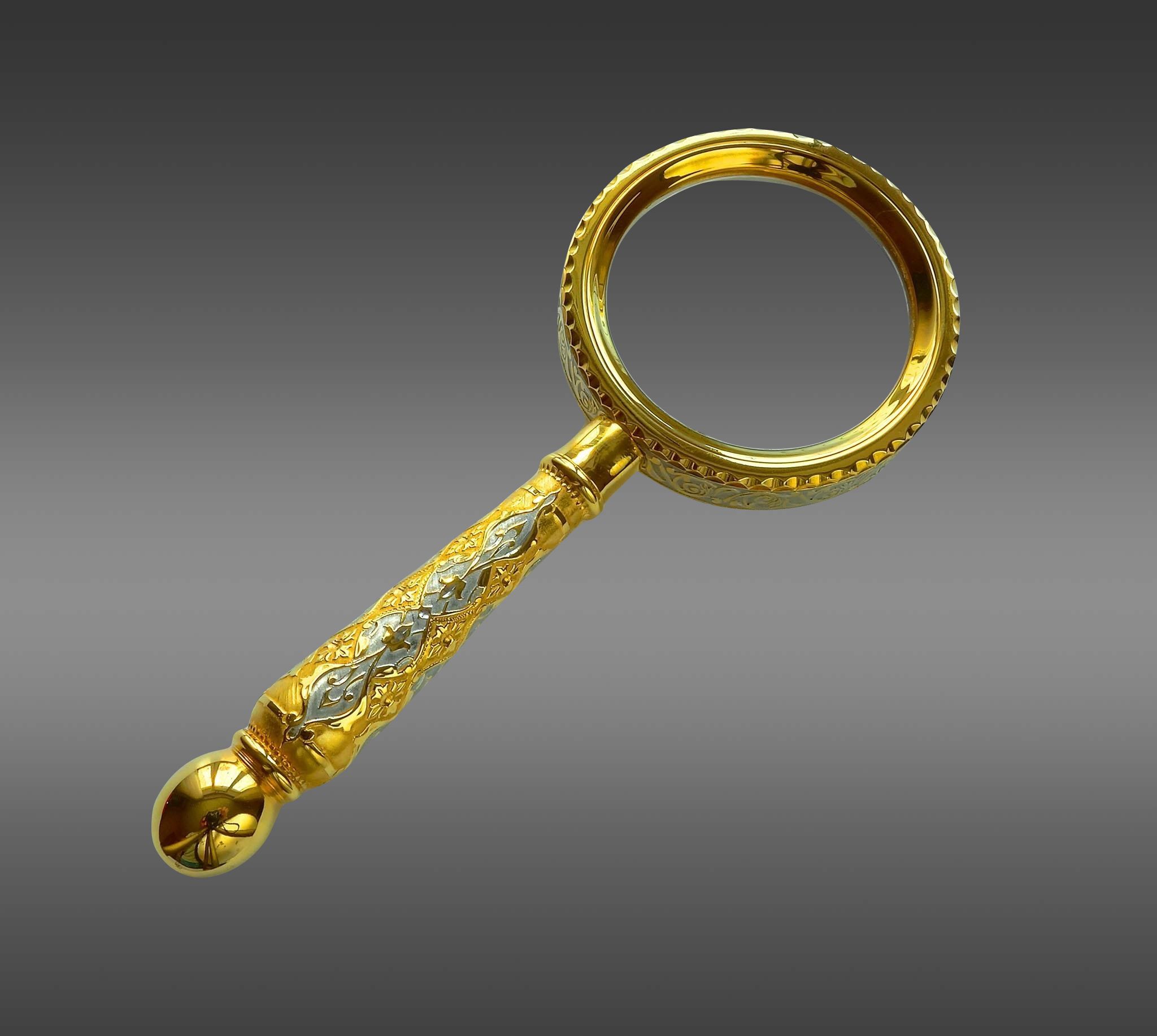 Элитная лупа № 2, произведённая в Златоусте, представляет собой сочетание функциональности и роскоши. Великолепный вариант для подарка или приобретения для собственной коллекции. Вместе с высококачественной линзой для увеличения, лупа имеет изысканный дизайн, украшенный элементами ручной работы. Этот классический аксессуар станет неотъемлемой частью Вашего рабочего стола или домашнего интерьера, принося шарм и элегантность. |
