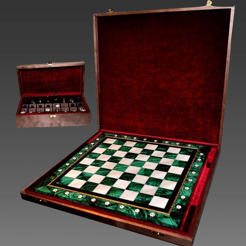 Эксклюзивные шахматы из малахита, долерита и мрамора