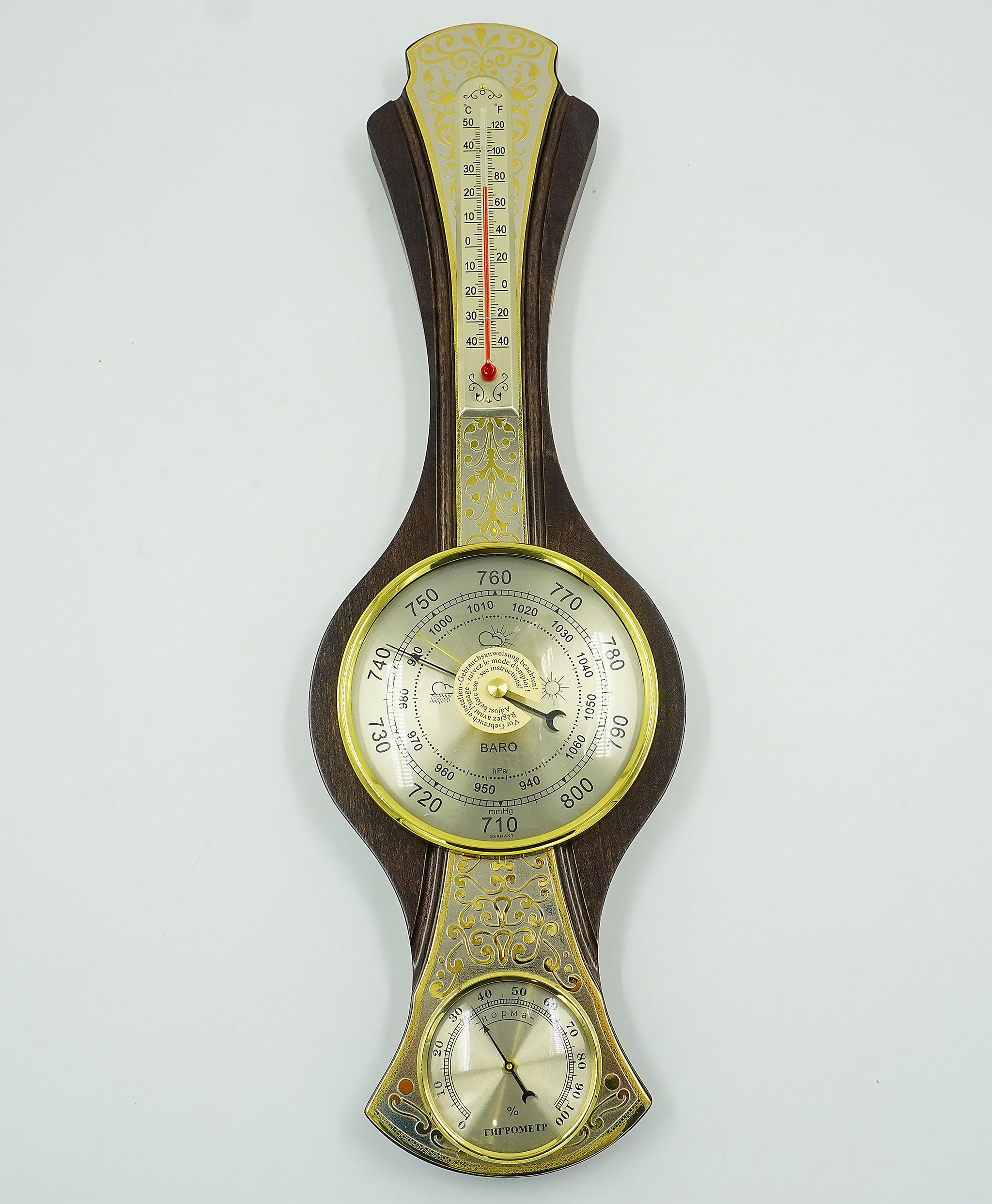 Добрый день. Хочу сказать, что это отличная домашняя метеостанция. И сами капсулы измерительные хорошие и деревянное оформление качественное, а элементы гравюры позолоченной вообще отдельная красотища. |