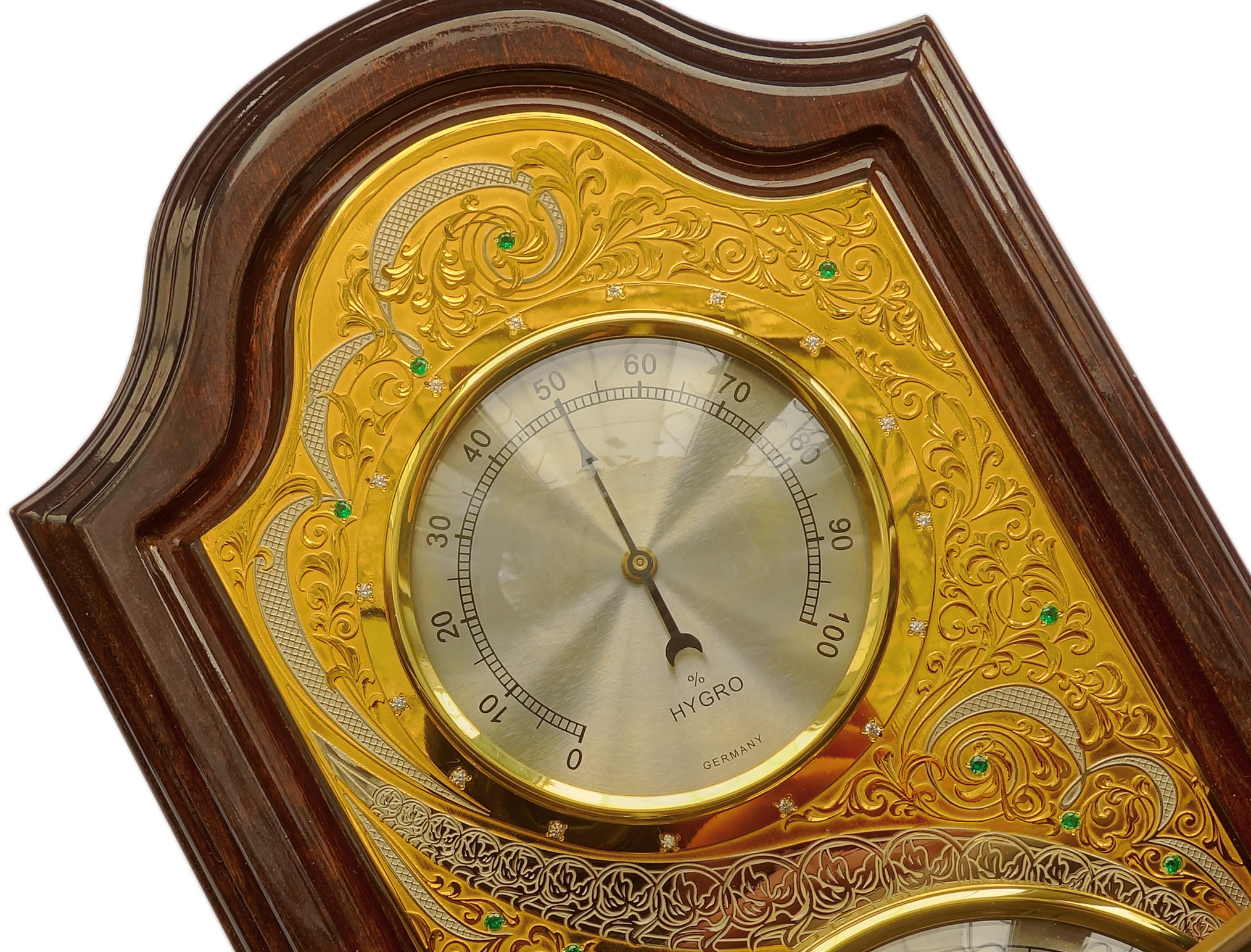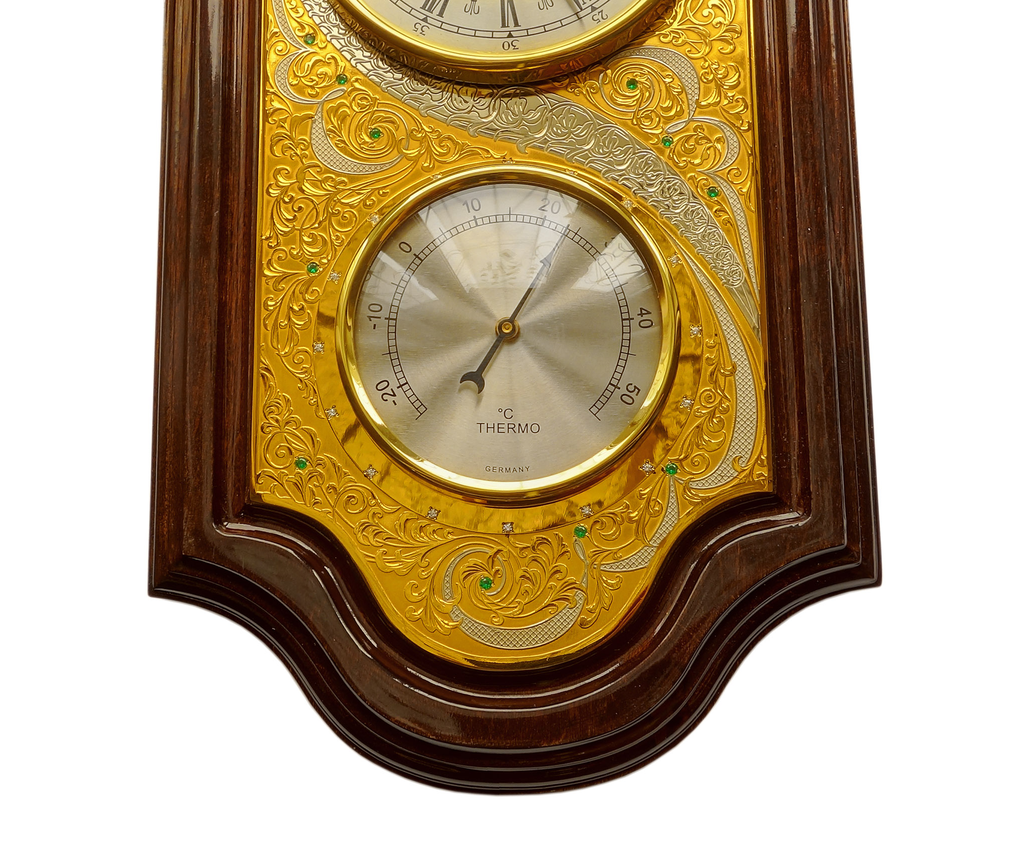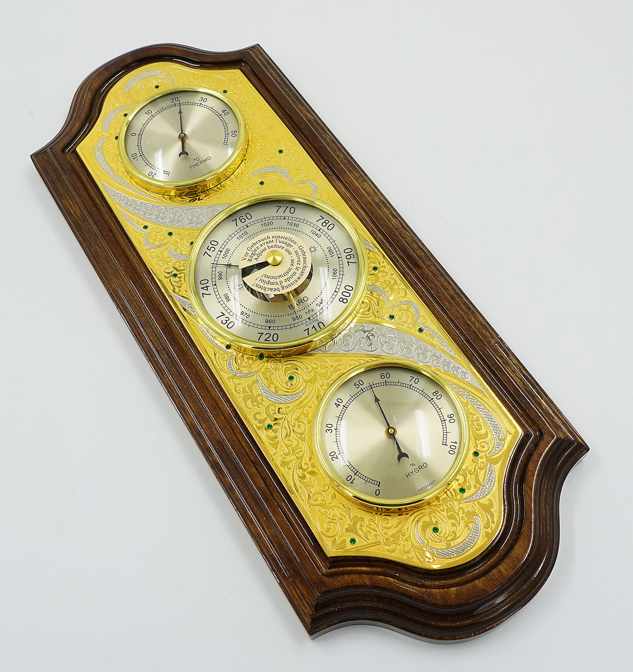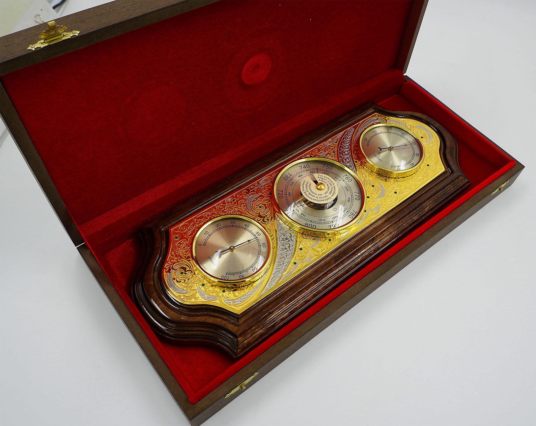 Изысканная метеостанция "Золотая", созданная мастерами Златоуста, станет идеальным дополнением интерьера любого офиса или дома. Устройство не только предоставляет точные показания температуры, влажности и давления, но и является настоящим произведением искусства. Золотистый корпус метеостанции изящно декорирован гравировкой, подчеркивающей уникальность и элегантность этого устройства. Великолепный подарок для любого, кто ценит точность, красоту и функциональность. |